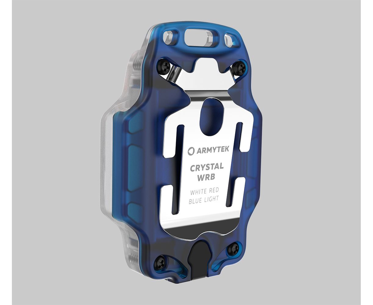Конструкция, материал корпуса и особое расположение диодов обеспечивают широкий угол света в 140°, оптимальный для применения на близком расстоянии. Заливающий луч делает Crystal WRB превосходным основным или дополнительным источником света на пробежке, велопрогулке, для обслуживания авто и решения повседневных задач. В дополнение к диоду белого света Crystal WRB оборудован диодом для использования в качестве красно-синего предупредительного сигнала. Crystal WRB оснащен емким для своего размера аккумулятором и работает до 50 дней в режиме минимальной яркости.