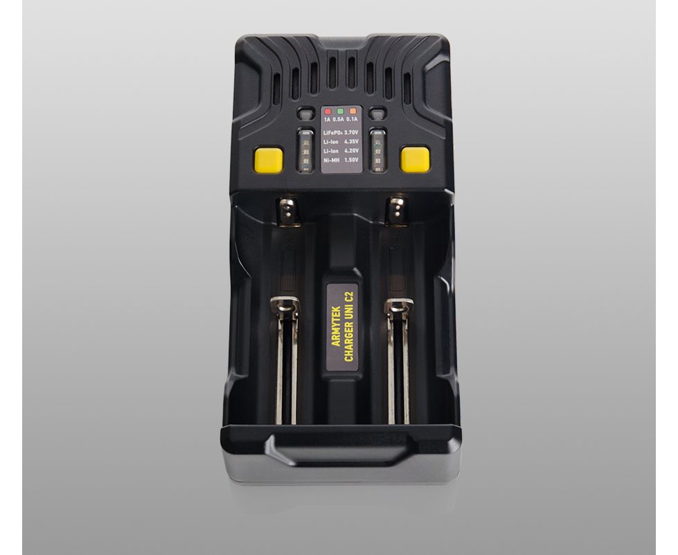 Armytek Uni C2 универсальное зарядное устройство. С помощью него Вы можете заряжать одновременно аккумуляторы разных типов, благодаря тому, что напряжение подается отдельно на каждый канал. Одной кнопкой Вы легко сможете выбрать тип батареи и ток заряда. Зарядное устройство изготовлено из огнестойких материалов для хорошего теплоотвода.
