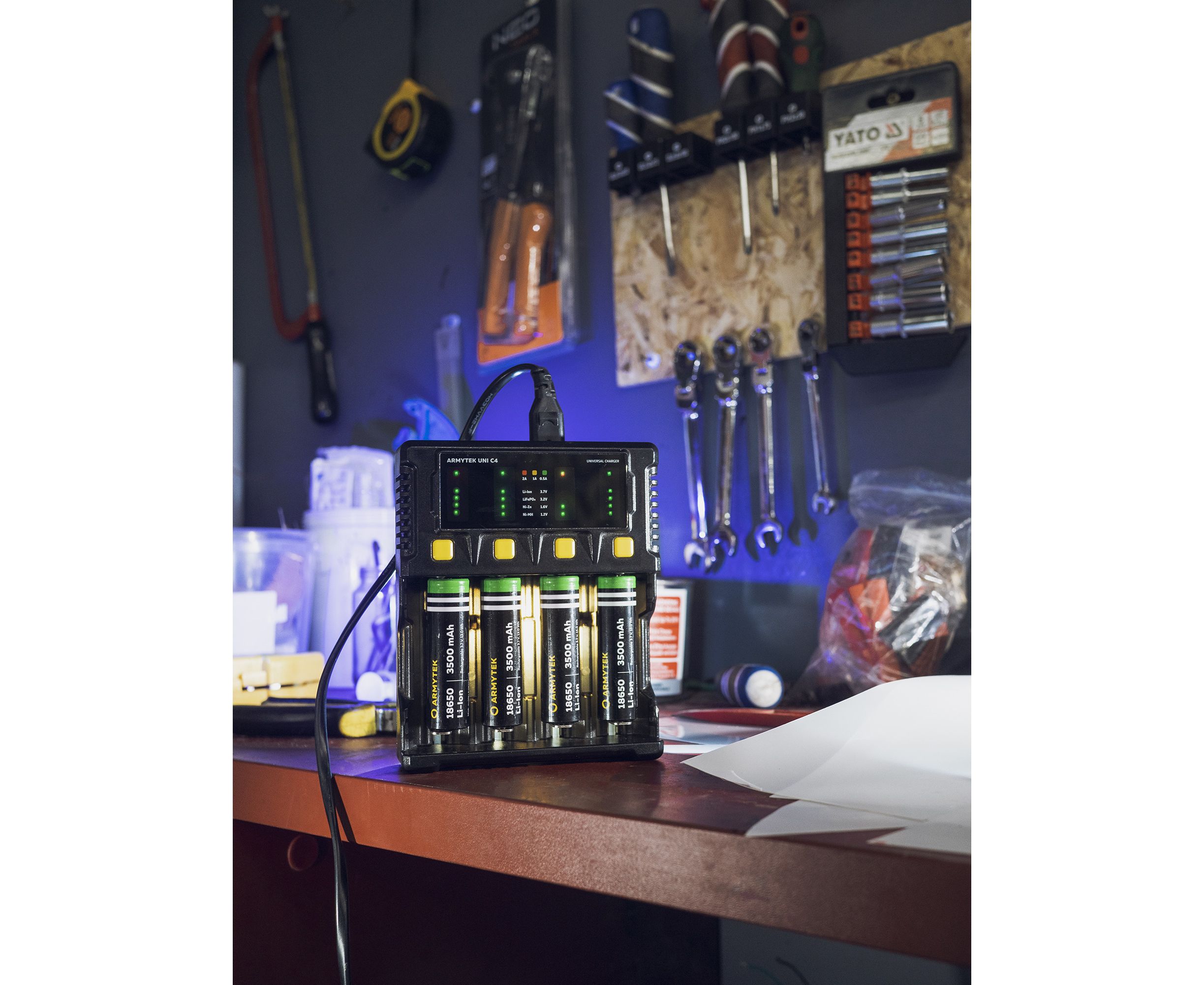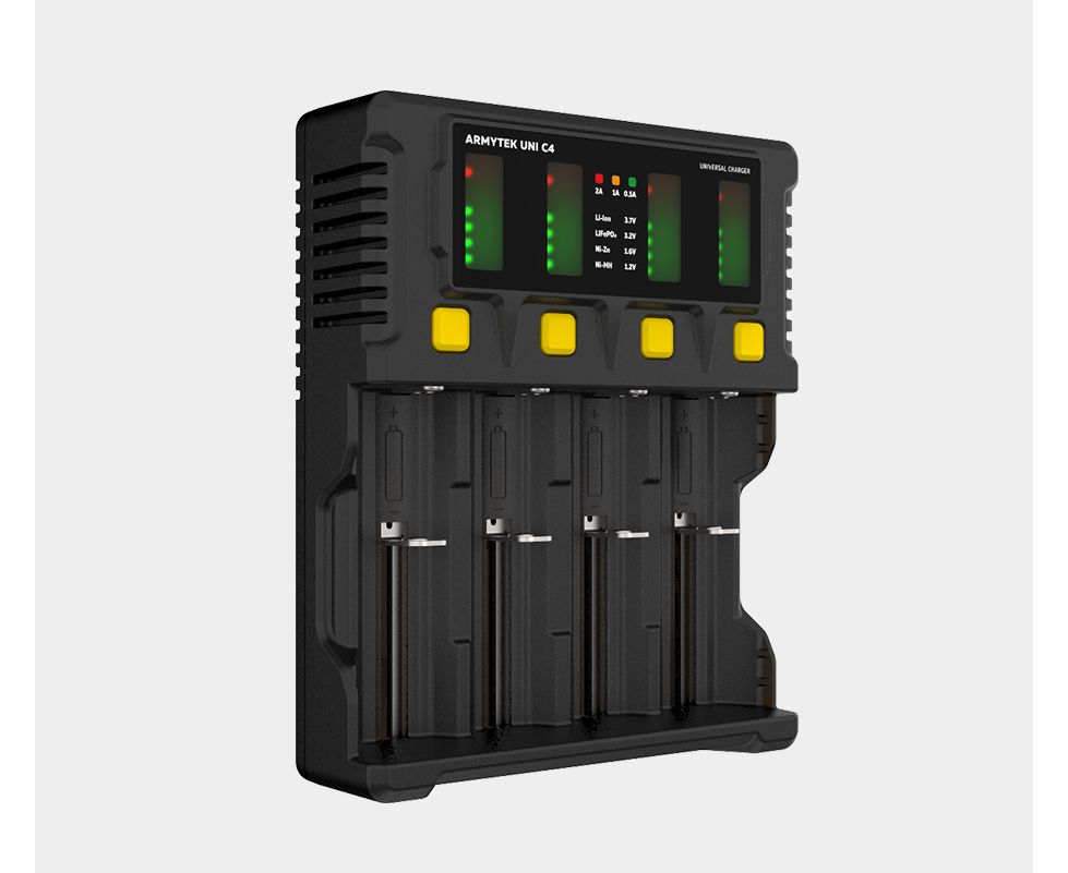 Uni C4 – универсальное зарядное устройство с интеллектуальным автоопределением типа аккумулятора, уровня заряда и оптимального тока. Одновременно заряжает до 4 аккумуляторов разного типа током до 2А. Отдельная кнопка для каждого канала обеспечивает простое ручное управление. Автомобильный адаптер в комплекте.