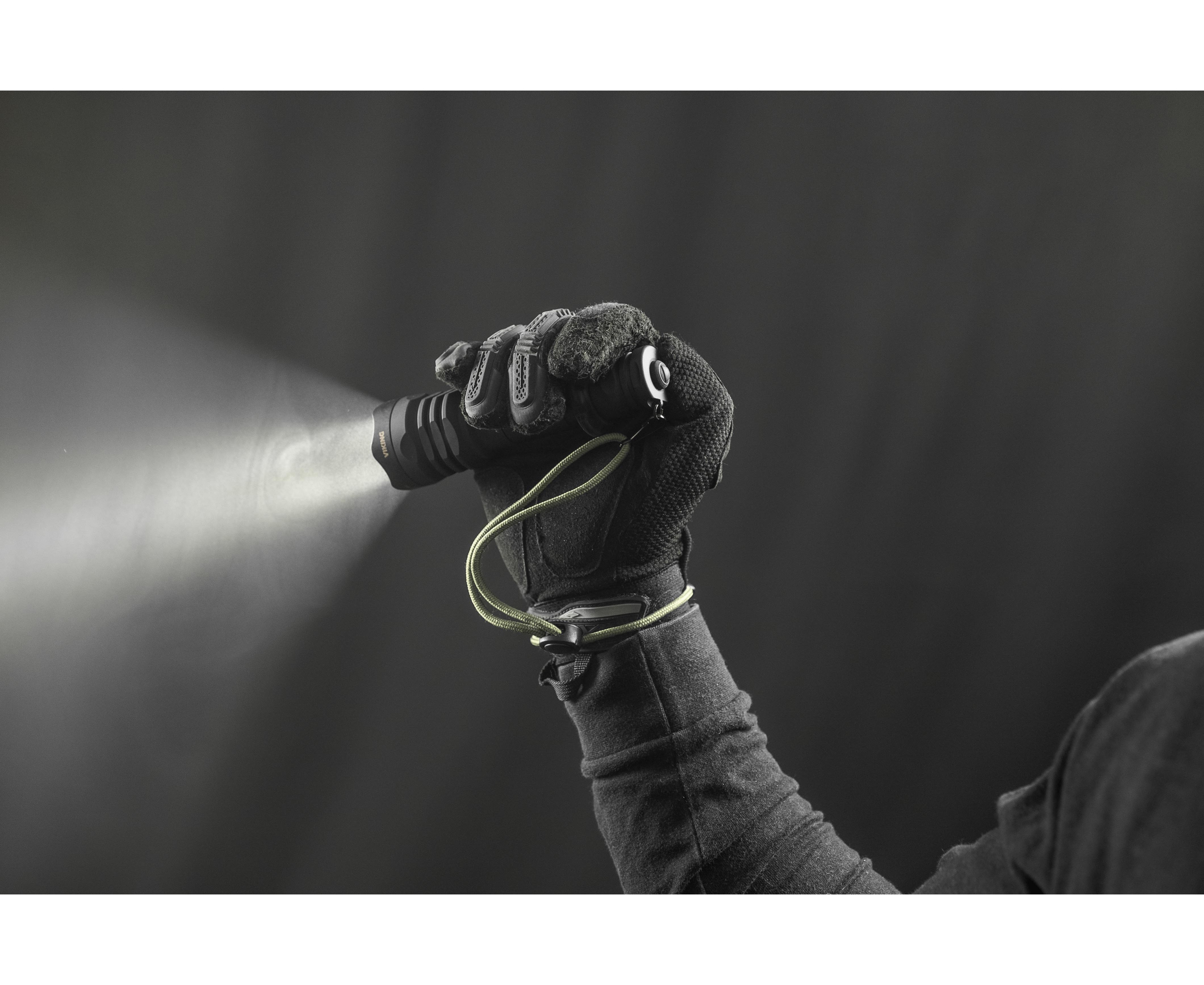 - Ремешок на руку из сверхпрочного паракорда с возможностью регулировать размер и стальным карабином для быстрого снятия и установки на фонарь.