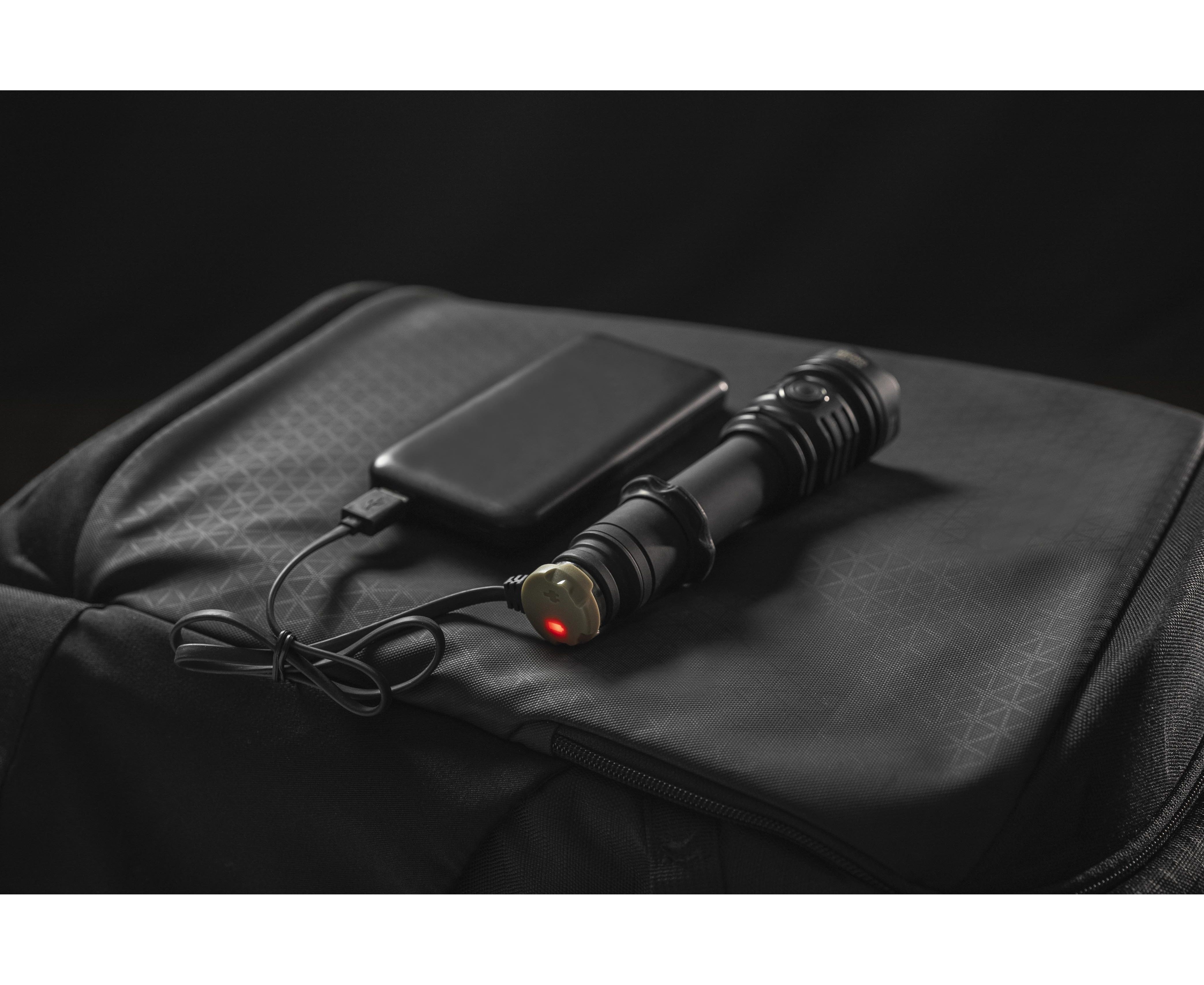 Готовое к использованию решение: аккумулятор высокой емкости 21700 Li-Ion 5000 мАч, адаптер для использования аккумуляторов 18650 Li-Ion или батарей CR123A, быстрая магнитная USB-зарядка в комплекте.