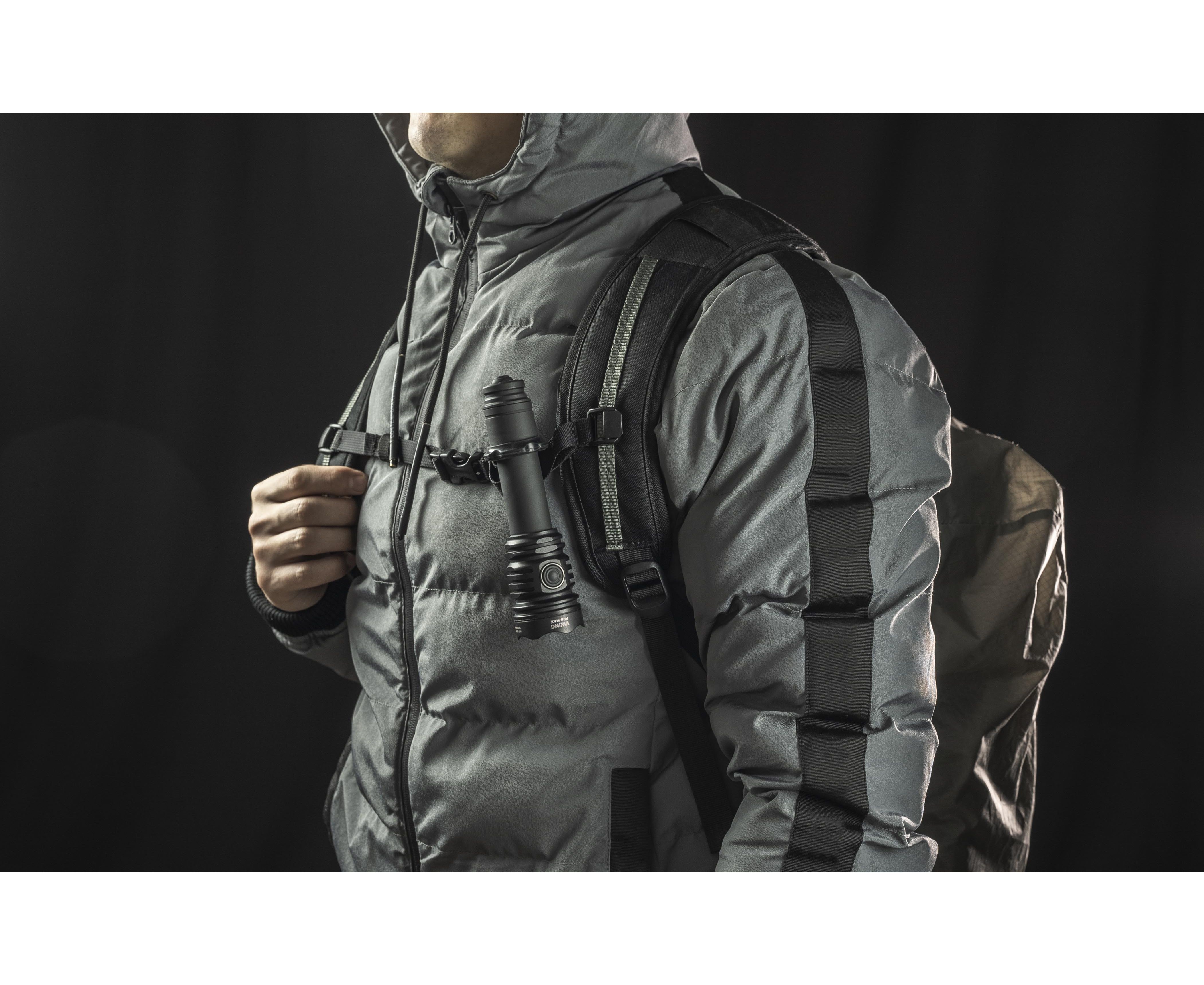 Viking Pro Max совместим со специально разработанной магнитной выносной кнопкой и оригинальными креплениями для подствольного применения. Модель работает не только на комплектном элементе питания, но и на любом стандартном аккумуляторе 21700 Li-Ion, а также, благодаря адаптеру, на аккумуляторе 18650 Li-Ion или на двух литиевых батарейках CR123A. Вариативность элементов питания позволяет значительно повысить автономность.
