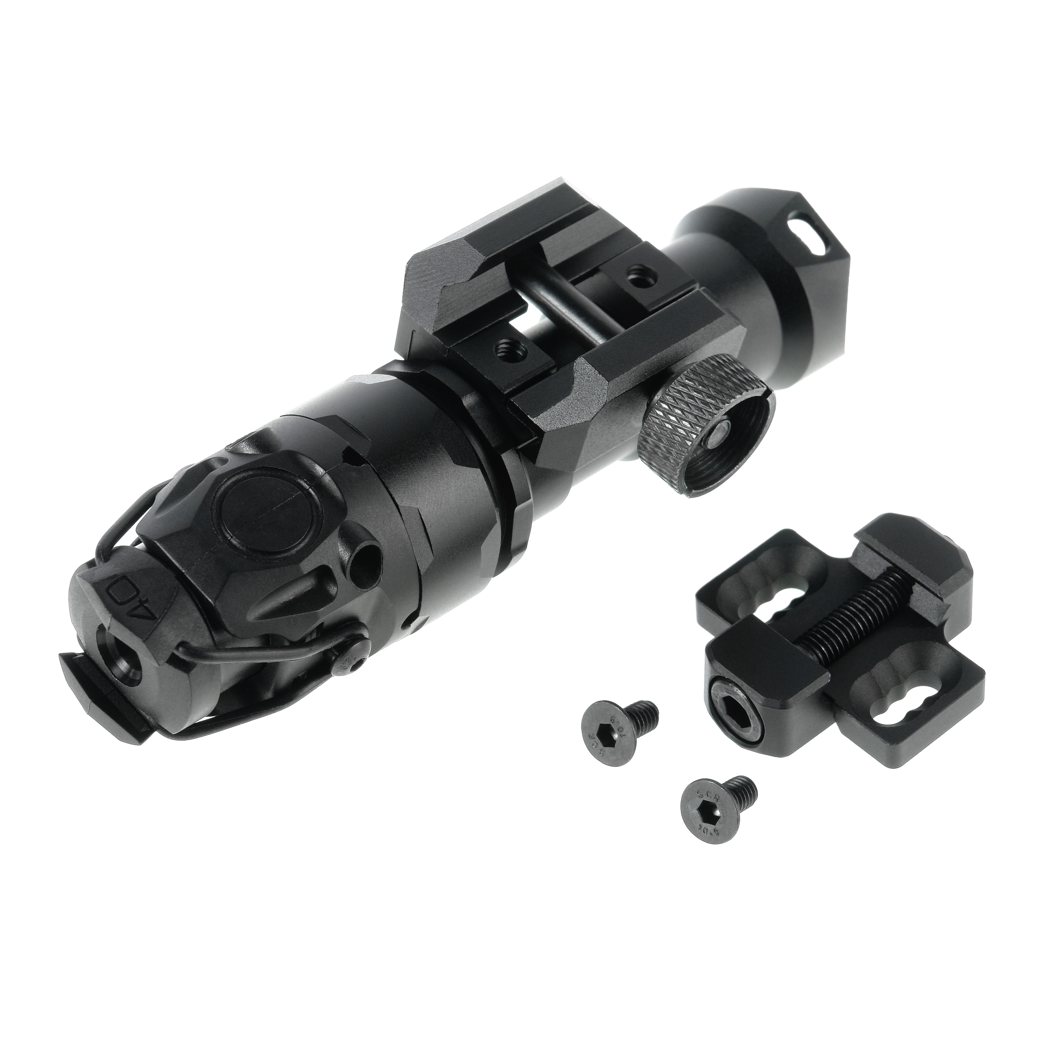 В комплекте предусмотрен адаптер для изменения угла Weaver с тремя положениями крепления. Он заменяет стандартный адаптер на низкопрофильное крепление, что позволяет закрепить фонарь под любой стороной ИК прибора.