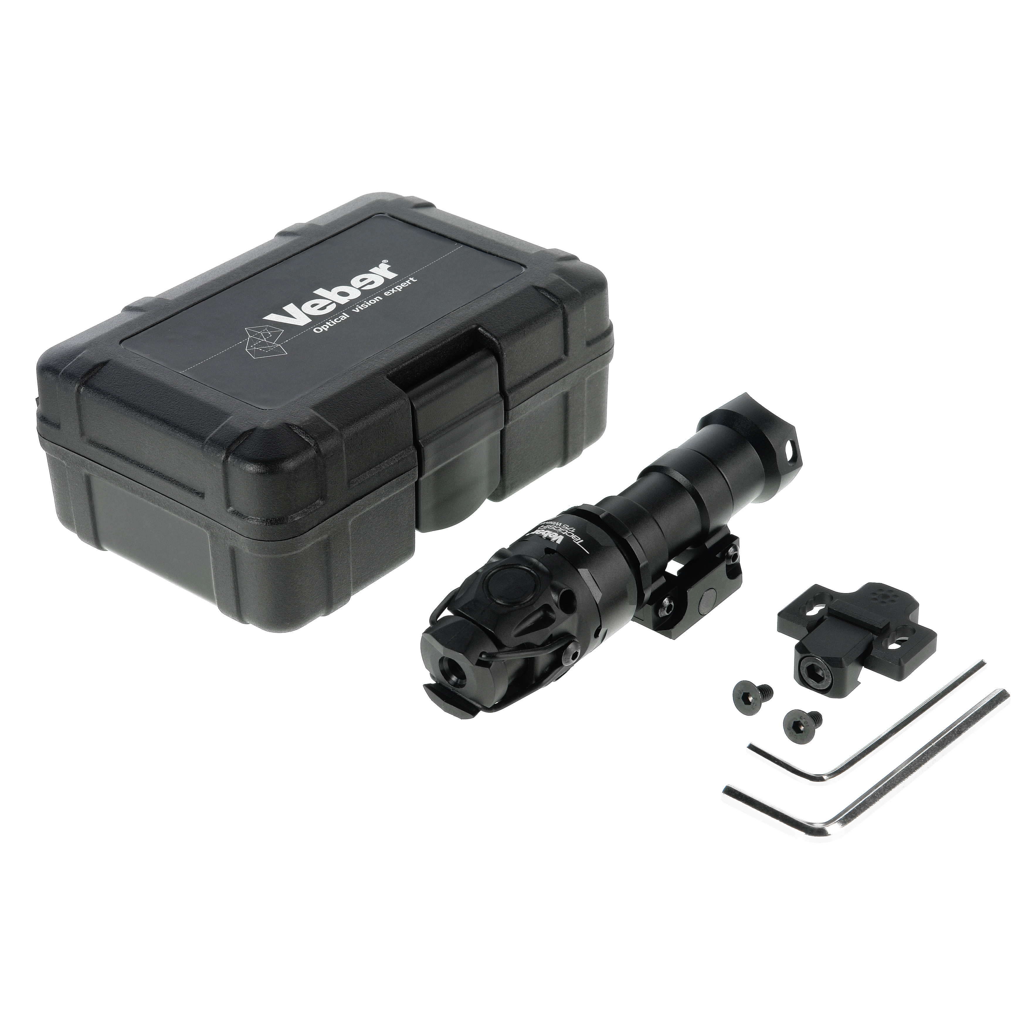Veber TacticsIR 175 Weaver – мощный тактический подствольный фонарь, предназначен для установки на ИК приборы ночного видения с планкой «Weaver» для увеличения дальности наблюдения, а также на оружие с дополнительной планкой «Weaver», которое используется с ночными ИК прицелами. Изделие может использоваться и как универсальный ручной фонарь при совместном использовании с цифровым (или на ЭОПе) прибором ночного видения.