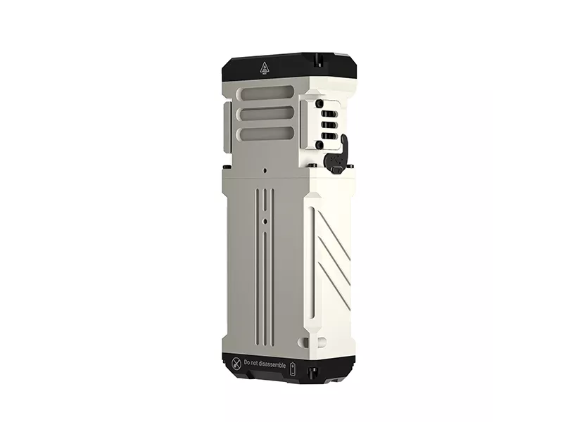 Портативный фонарь оснащен двумя встроенными батареями 21700 с общей ёмкостью 4800mAh, которые обеспечивают от 1,7ч (в режиме 3000 Лм) до 220ч (при 20 Лм) автономной работы.
