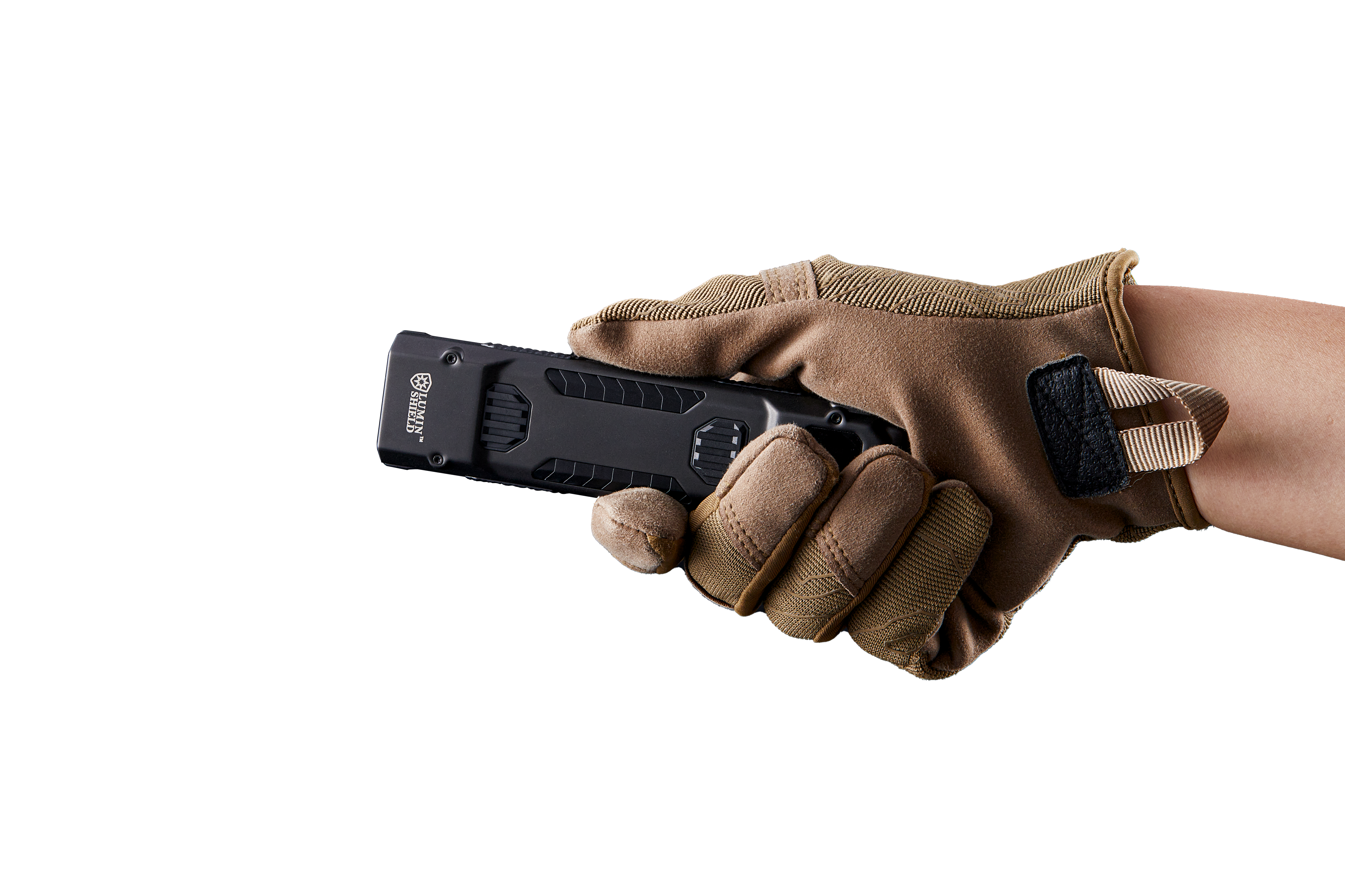 Фонарь оснащён двойными тактическими переключателями, позволяющими точно управлять включением, выключением и регулировкой яркости. Настраиваемая кнопка позволяет пользователям адаптировать функции под свои нужды — половинное нажатие для SEARCH и полное нажатие для LUMIN SHIELD™ или STROBE. Система Rapid Lock™ обеспечивает быструю блокировку фонаря для немедленного реагирования.