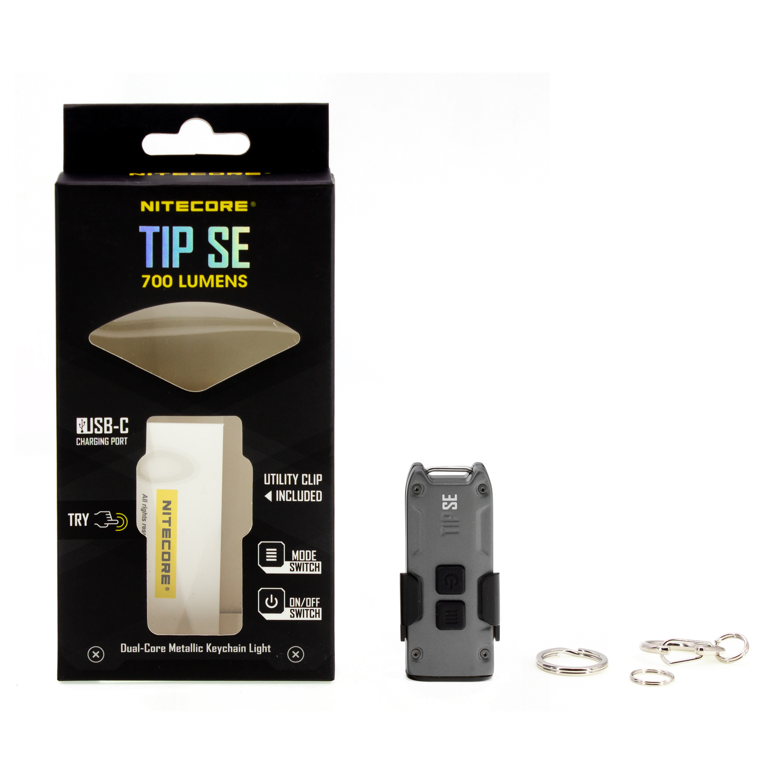Фонарь TIP SE, наключный карабин, 2 наключных кольца.