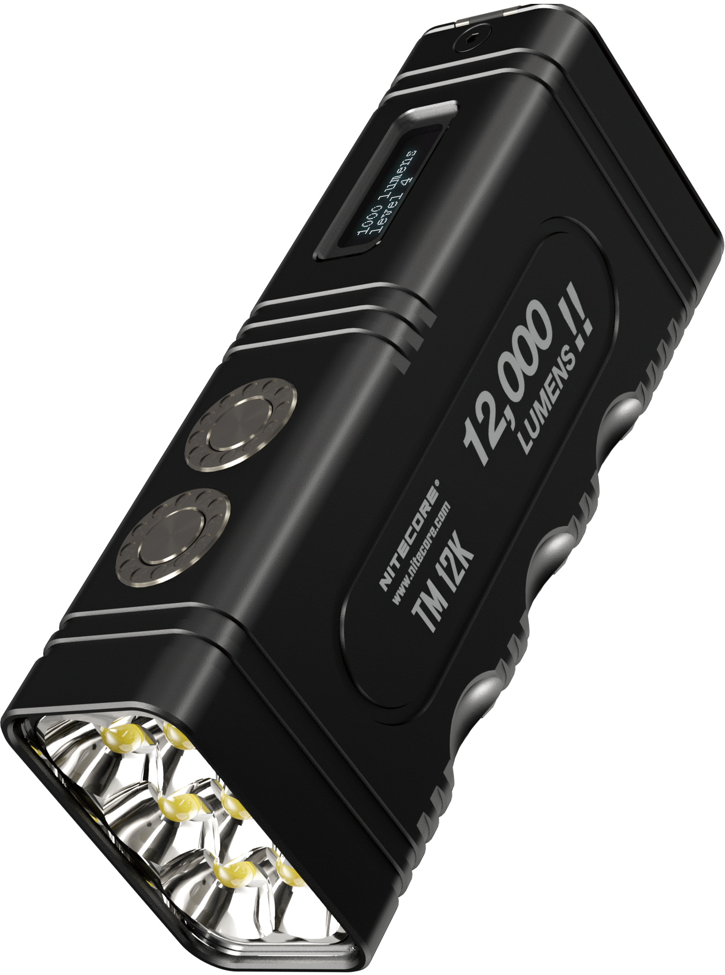 Новое поколение серии NITECORE TM – TM12K. Благодаря 6 светодиодам CREE XHP50 выходная мощность TM12K повышается до 12 000 люмен, а интенсивность луча достигает 15 600 кд. Кроме того, TM12K имеет цельнолитую конструкцию с ЧПУ, отличающуюся легкостью, прочностью и отличным отводом тепла. Эргономичный дизайн с 7 противоскользящими углублениями для пальцев обеспечивает более прочный захват, а вместе с двойными боковыми кнопками и переключателем позволяет выполнять различные операции одним удерживающим жестом.