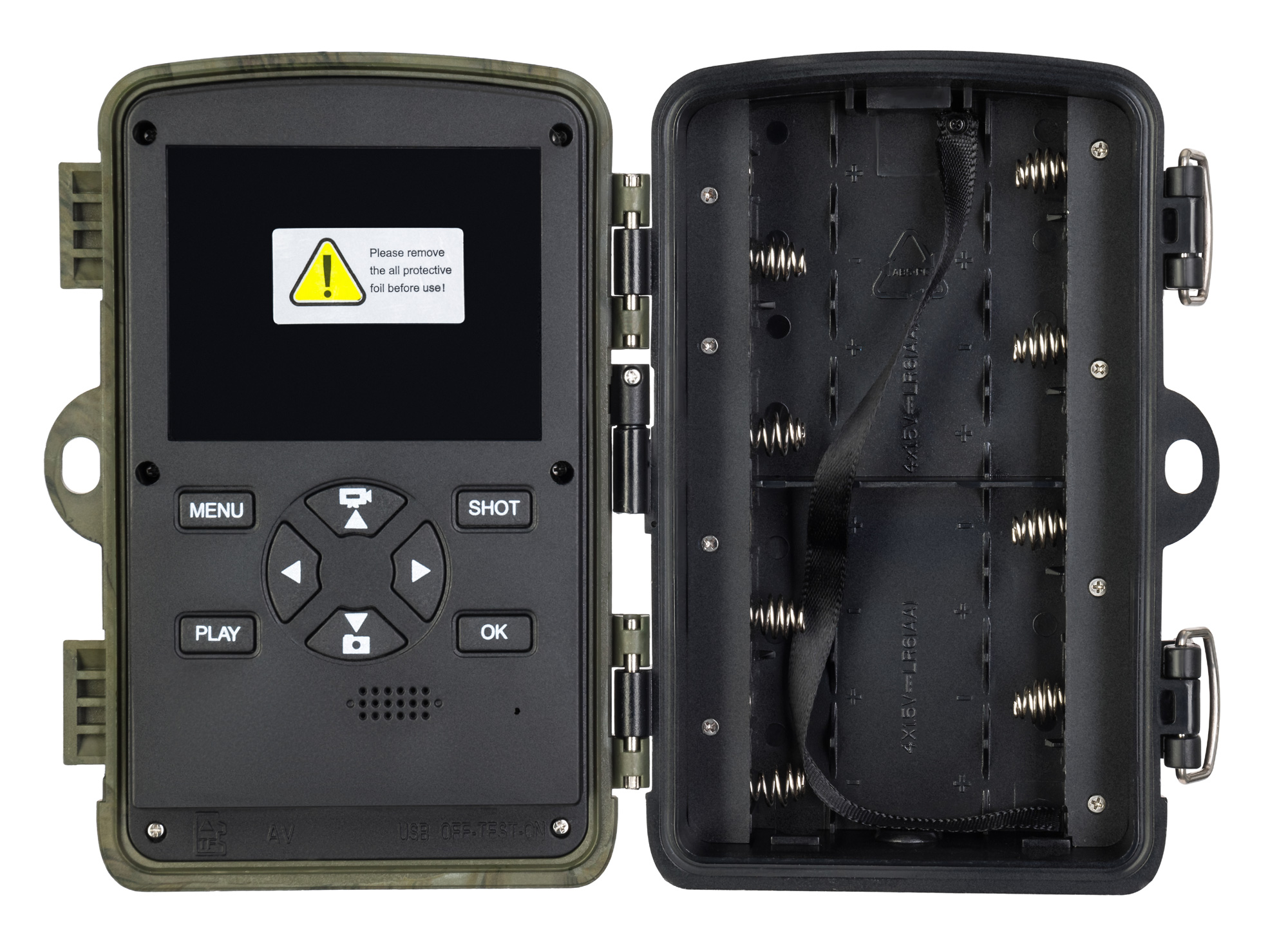 Камера работает на батарейках типа АА или от внешнего источника питания. У нее широкий диапазон рабочих температур (от −20 до +50 °С), а корпус защищен от водных брызг, поэтому ловушка подойдет для установки в любое время года. Ее можно зафиксировать на дереве или стене при помощи комплектных креплений и штатива.