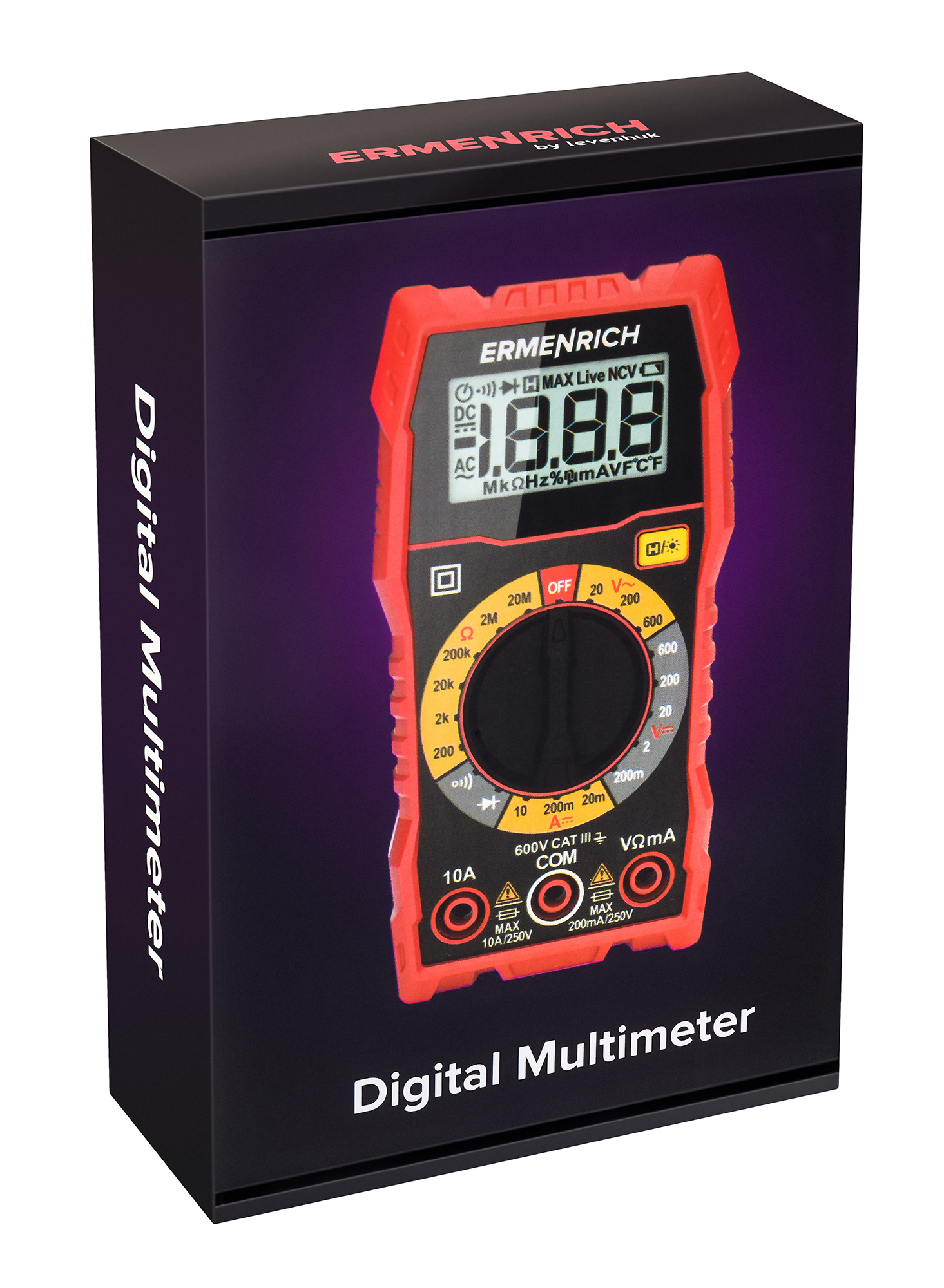 Цифровой мультиметр Ermenrich Zing TC07 имеет классический поворотный переключатель режимов работы и используется для измерения постоянного и переменного напряжения, постоянного тока и сопротивления. Возможностей прибора хватает для решения большинства задач домашнего мастера и для выполнения базовых замеров в рамках профессиональной работы электрика.
