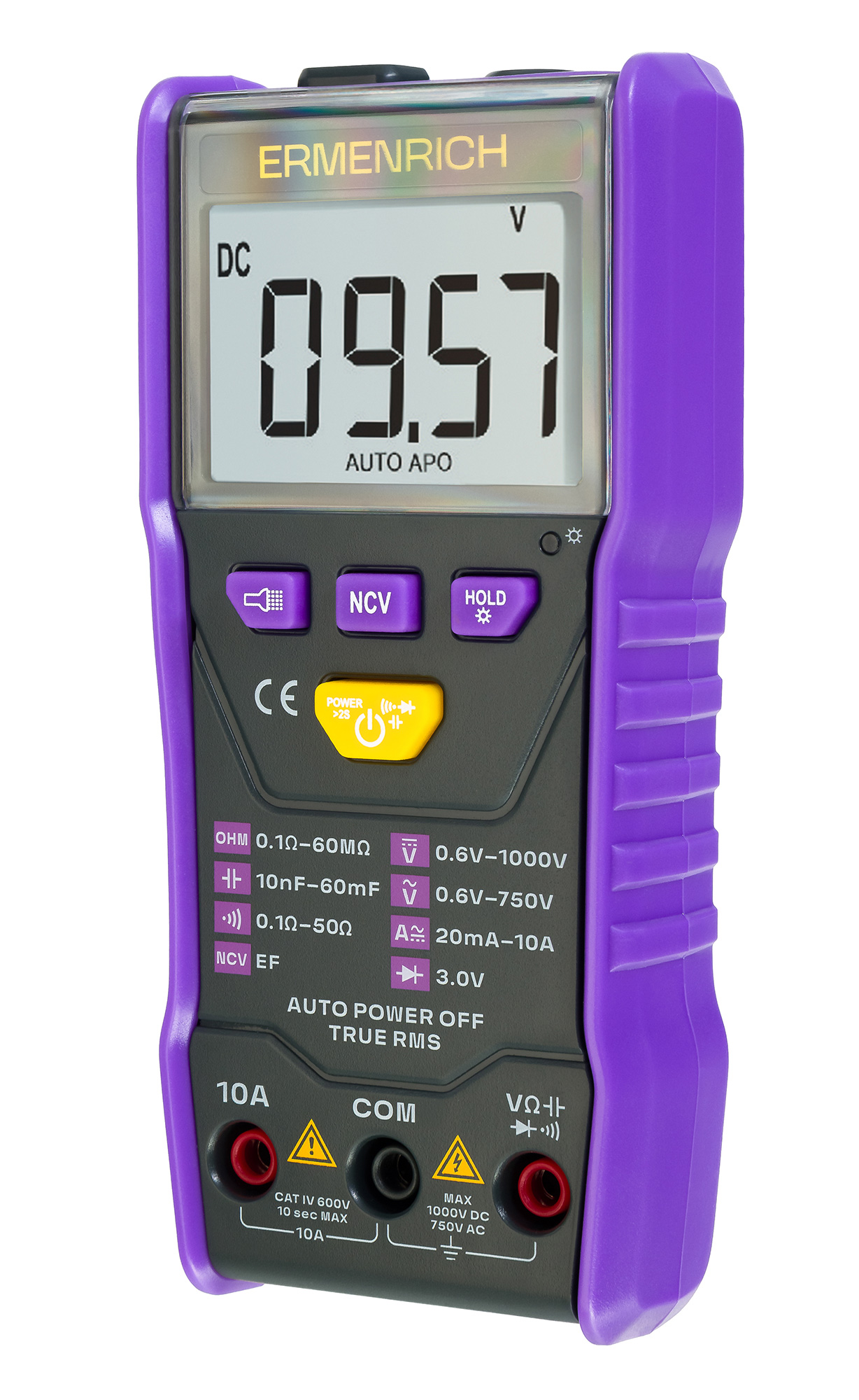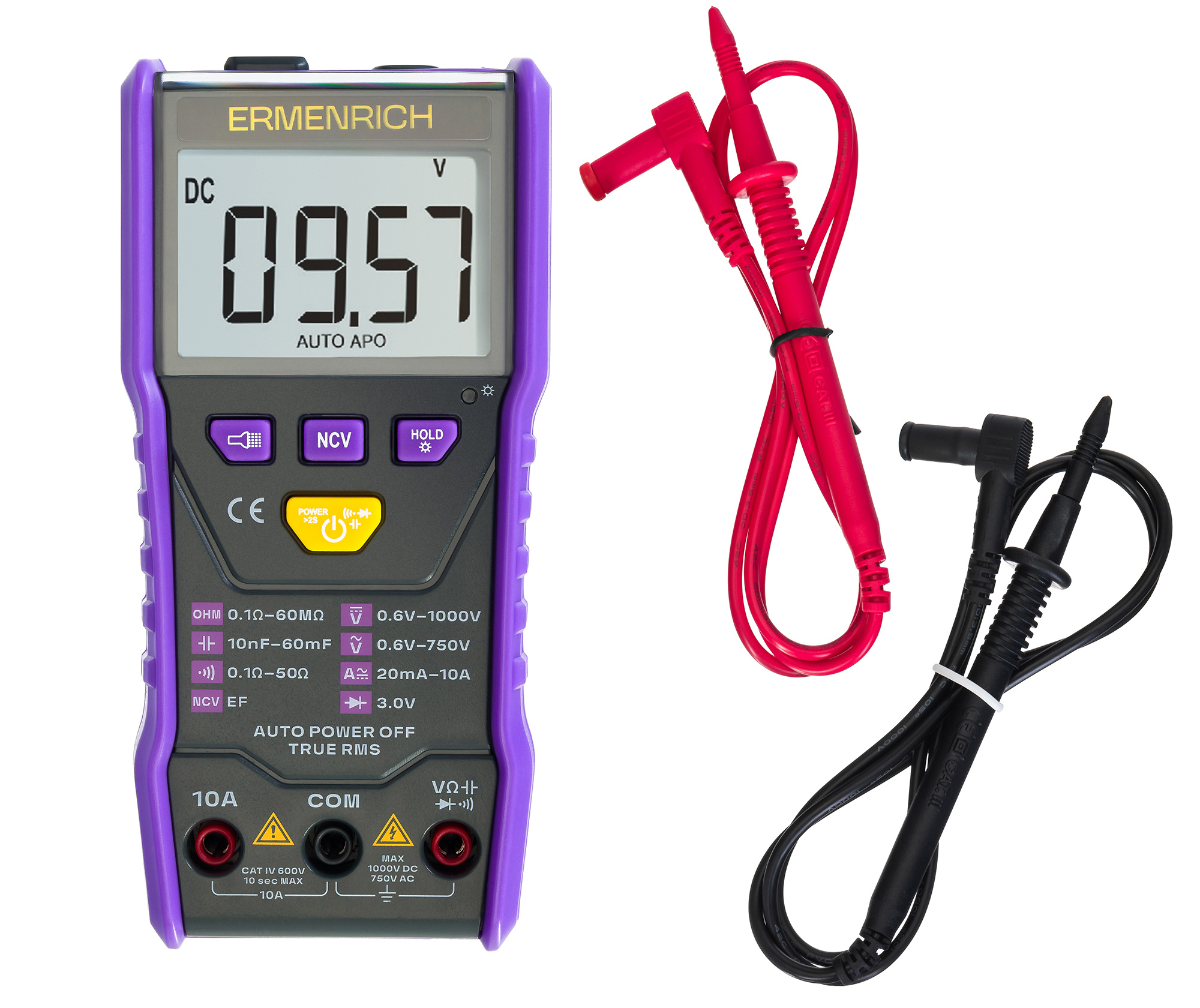 Цифровой мультиметр Ermenrich Zing TC20 – портативный прибор для измерения постоянного и переменного напряжения, постоянного и переменного тока, сопротивления и емкости. Он не оснащен поворотным диском – предел измерений выбирается автоматически. Прибор защищен от перегрузок, надежен и стабилен в работе, обеспечивает высокую точность измерений. Идеально подходит для радиолюбителей, домашних мастеров, профессиональных электриков.