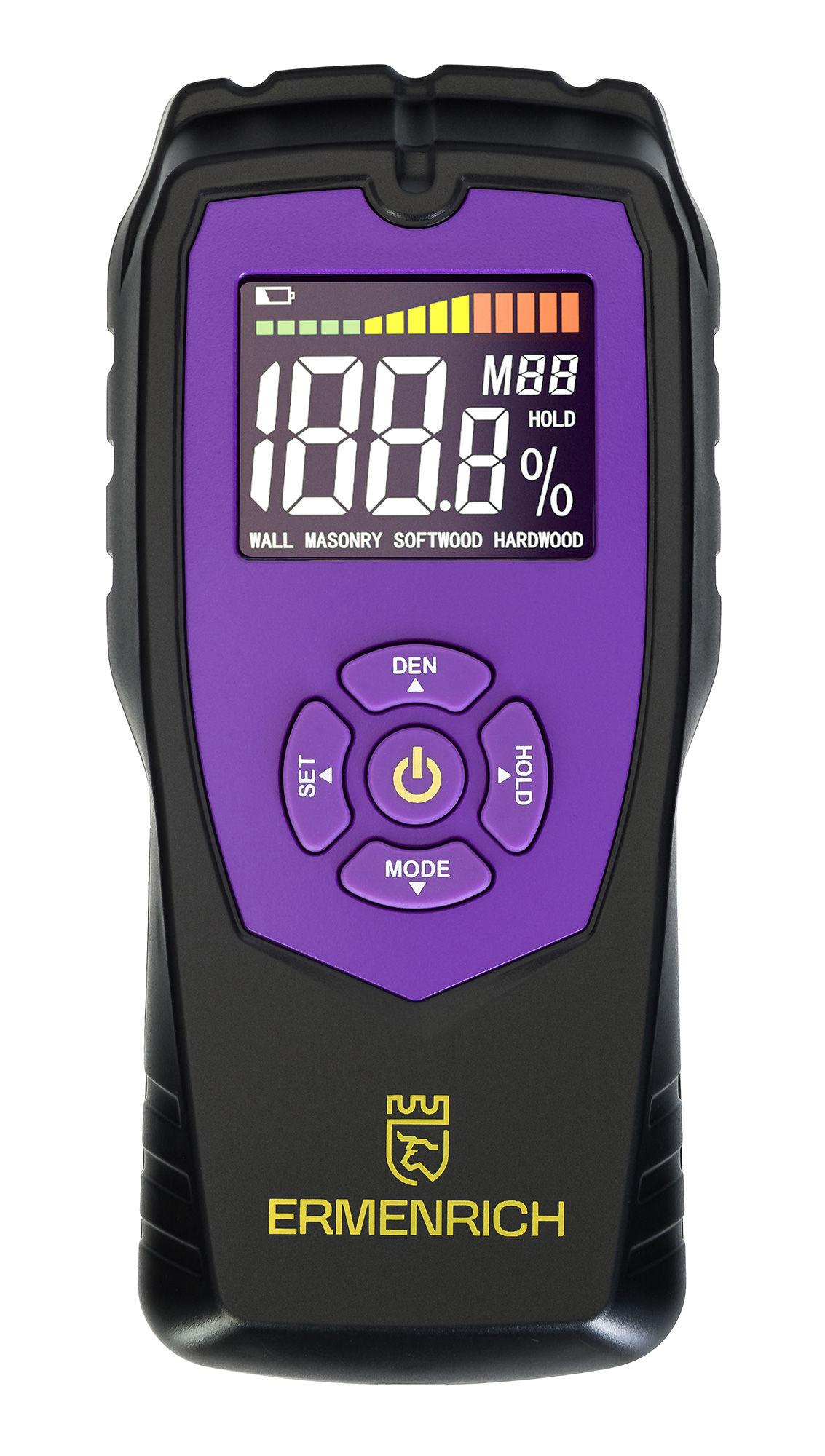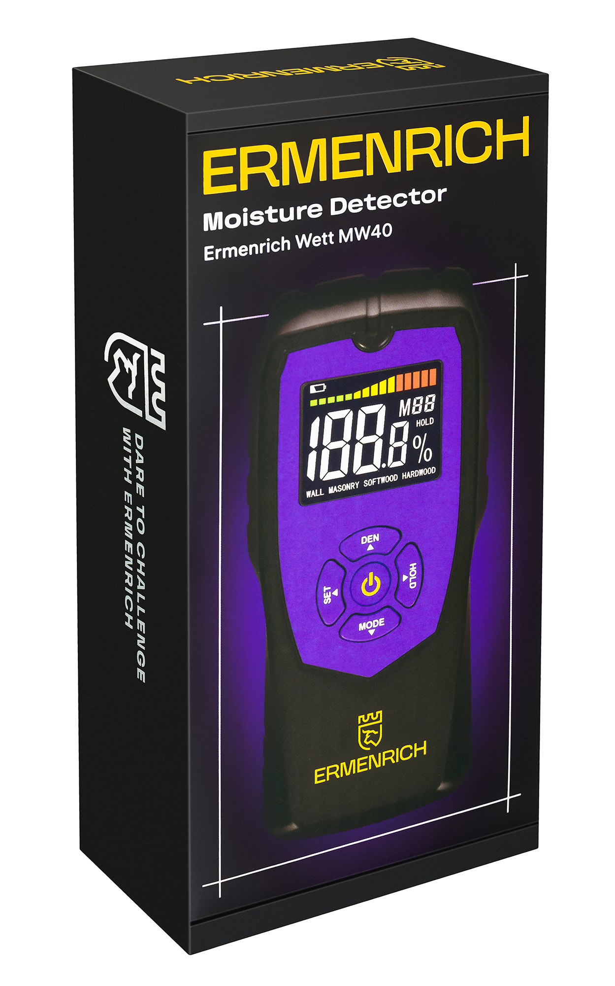 Ermenrich Wett MW40 – измеритель влажности материалов (влагомер), который работает по бесконтактной технологии, а значит, не наносит повреждений измеряемым материалам. Прибор может работать с материалами из дерева, гипсокартонном, бетоном и проч. Он отлично подойдет для повседневного использования в быту, проведения ремонтных работ в квартире или на загородном участке, а также будет востребован в строительстве и на производстве – для оценки влажности материалов, конструкций и изделий.