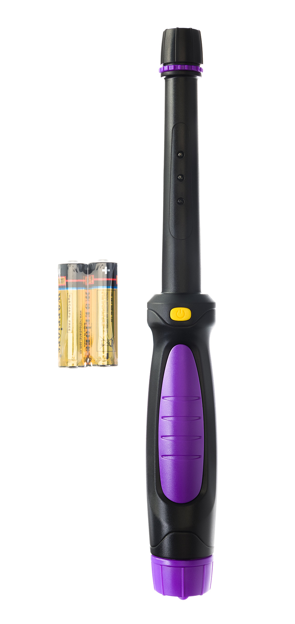 - Работает от двух стандартных батареек, есть функция автоотключения