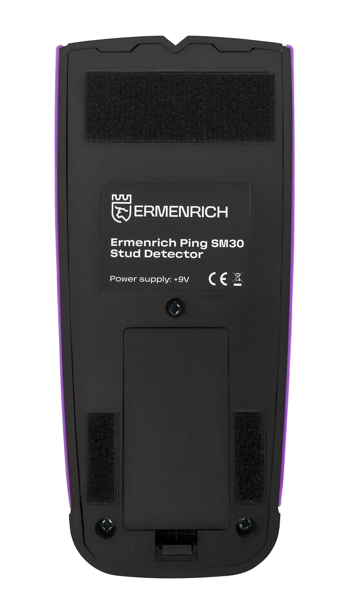 Детектор проводки Ermenrich Ping SM30 отличается такими преимуществами, как автоматическая калибровка, наличие звуковых оповещений, эргономичный корпус удобной формы. Он выполнен с применением ABS-пластика повышенной прочности и не боится внешних воздействий, а благодаря боковым вставкам из термопластичной резины надежно лежит в руке. Работает детектор от одной батарейки типа «Крона», функция автоотключения и индикатор низкого заряда помогают продлить срок ее службы.