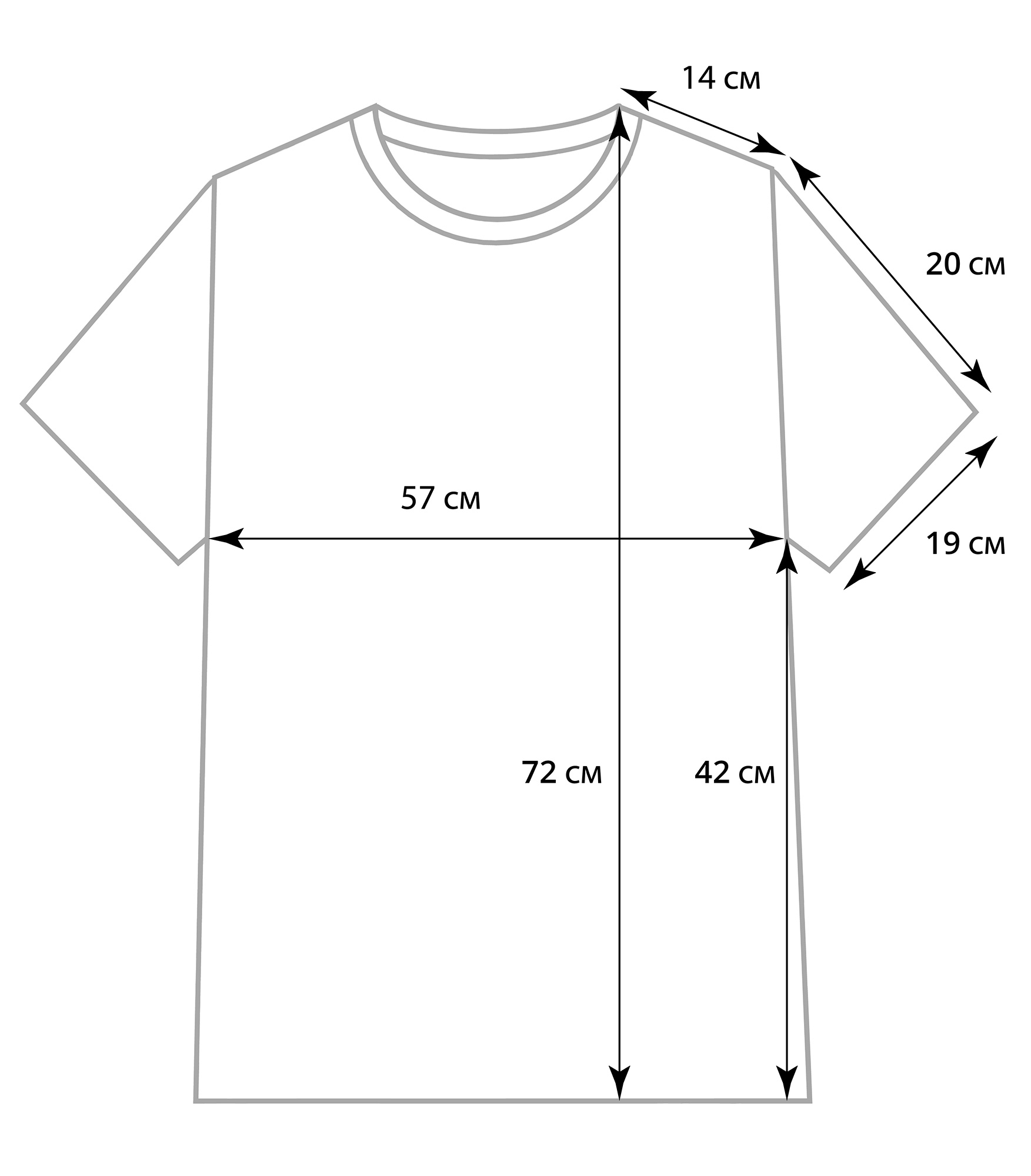 Размер: XL/52 (длина – 72 см, ширина – 57 см, плечо – 14 см, длина рукава – 20 см).
