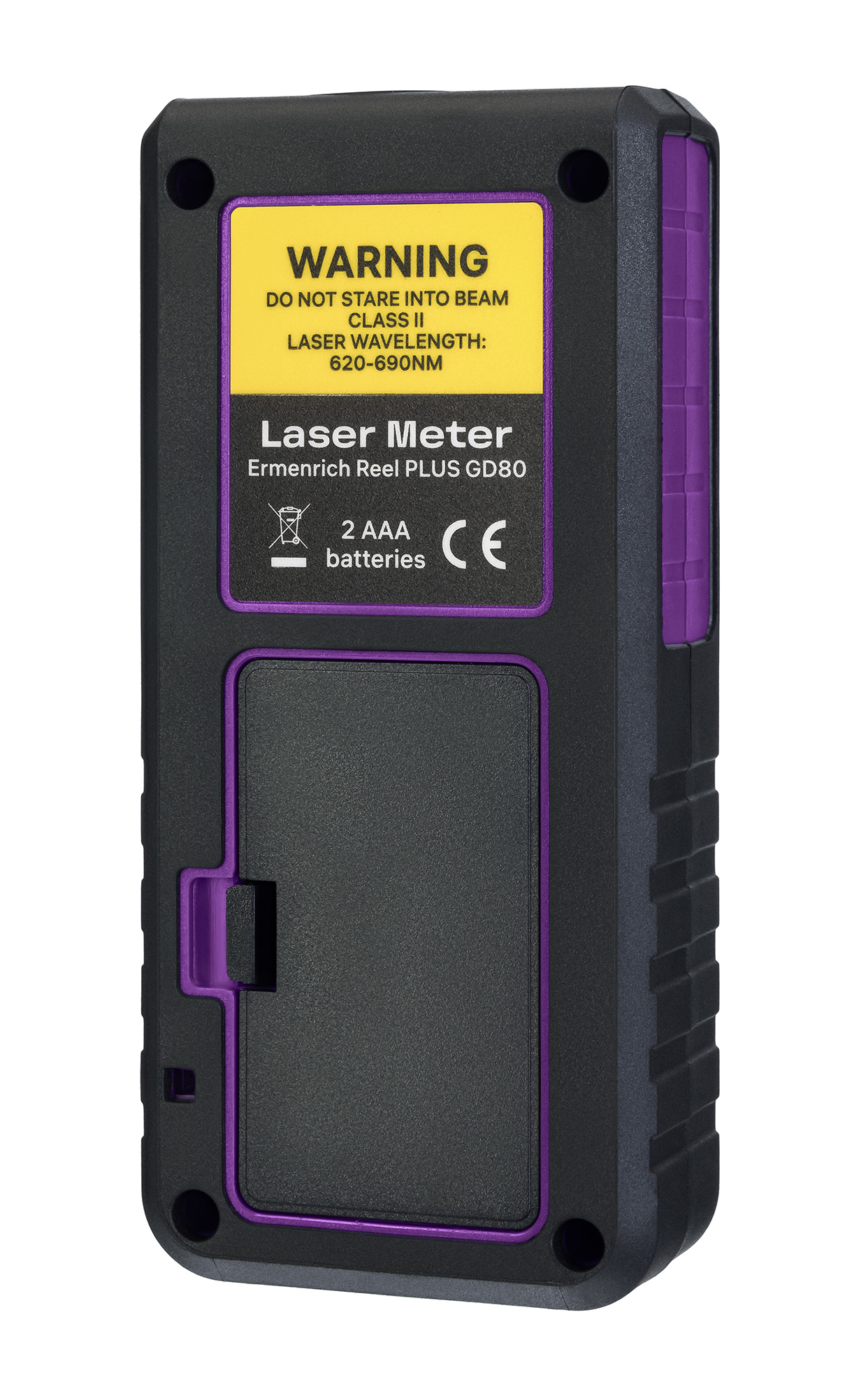 Рулетка Ermenrich Reel GD80 – эргономичное и компактное устройство, все клавиши управления доступны при работе одной рукой. Питание подается от 2 батареек ААА, заряда достаточно для 5000 и более измерений. Функция автоотключения лазера и прибора также способствует экономии заряда батареек. В памяти рулетки можно сохранять до 20 групп данных, фиксируя результаты проделанной работы. Профессионалы оценят наличие беззвучного режима, позволяющего выполнять замеры в тишине.