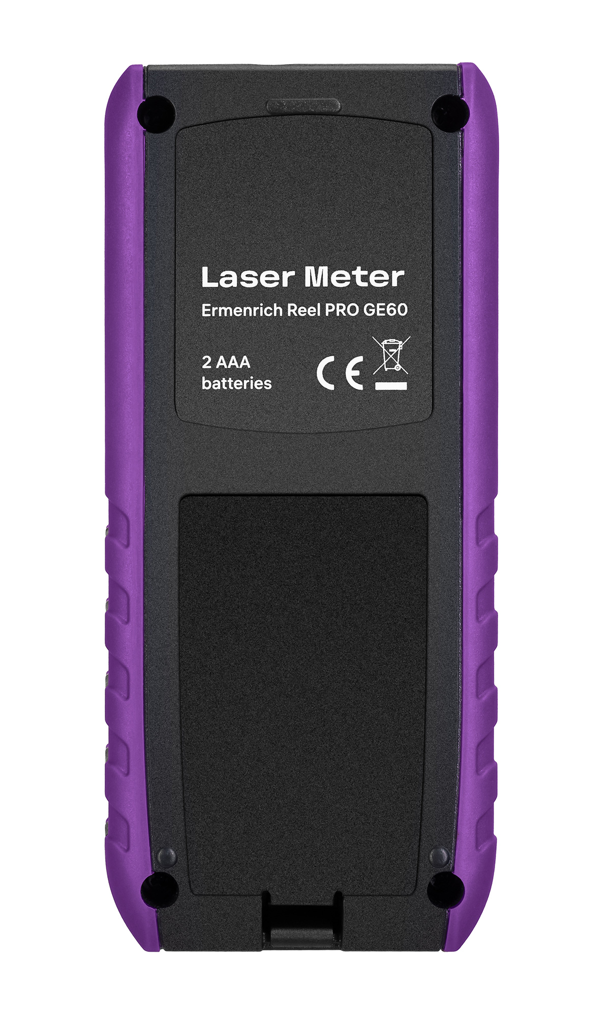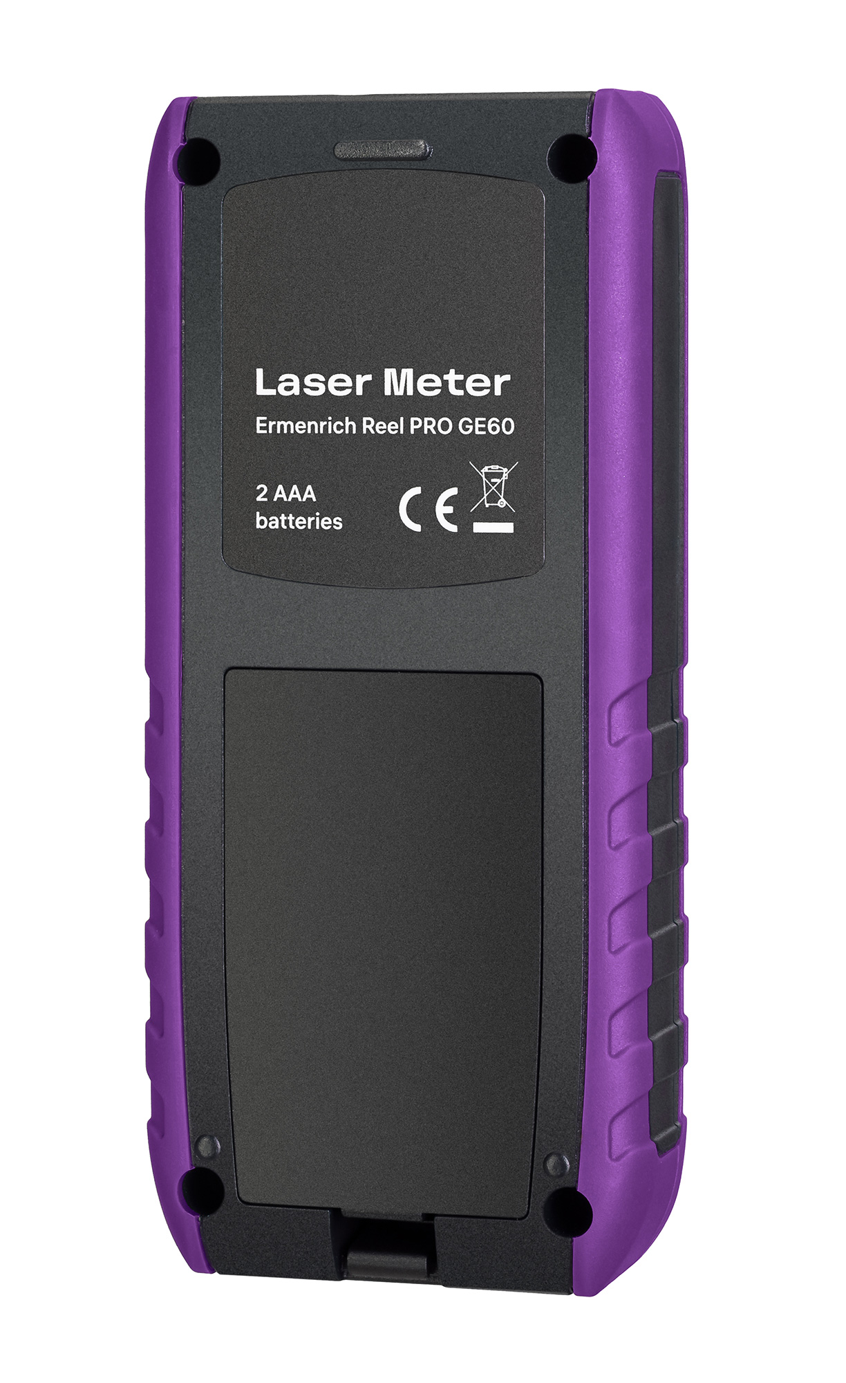 Лазерная рулетка Ermenrich Reel GE60 позволяет делать точные измерения длины в диапазоне от 0,05 до 60 метров, а также измерять углы, площадь и объем помещений и объектов. Важным достоинством прибора является функция «Пифагор»: если нет возможности установить рулетку в нужной точке или на пути лазерного луча возникает препятствие, достаточно сделать два дополнительных измерения, по которым рулетка рассчитает нужное расстояние.