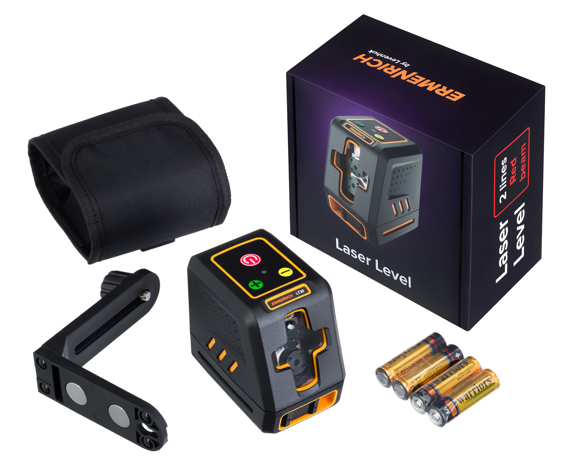 Представляем лазерный уровень Ermenrich LT20 – универсальный инструмент для строительства, ремонта и проведения отделочных работ. Он снабжен красными лазерными светодиодами, которые выстраивают две пересекающиеся линии. Уровень может устанавливаться на расстоянии до 15 метров от поверхности, на которую направлены лучи. Угол развертки – 130 градусов в горизонтальной и вертикальной плоскости. Система компенсации обеспечивает самовыравнивание лазерных линий, что в сочетании с небольшой погрешностью помогает выполнить разметку максимально точно.