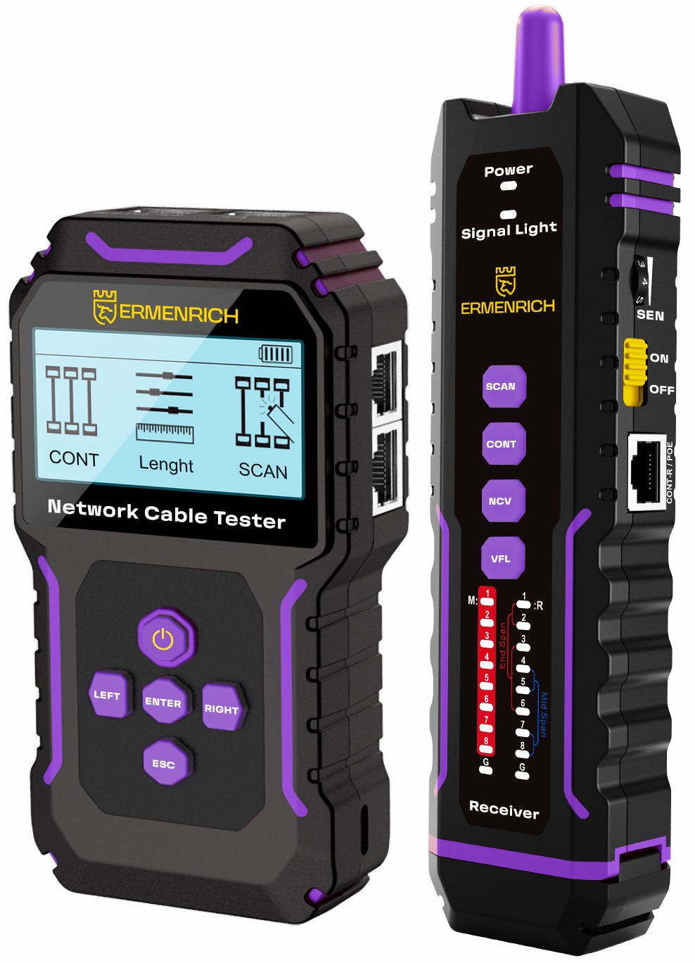 Многофункциональный кабельный тестер Ermenrich NetGeeks NP45 – незаменимый инструмент для профессионалов, занимающихся монтажом, обслуживанием и ремонтом компьютерных и телефонных сетей, созданных на базе витой пары. Тестер совместим с кабелями STP/UTP категорий 5E/6/6A и другими проводами с металлическим сердечником.