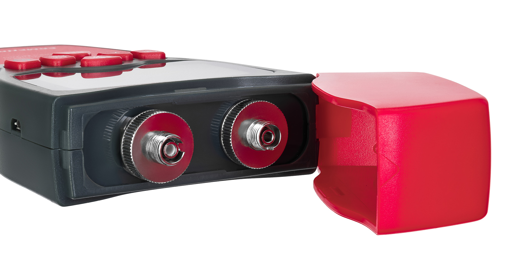 Прибор оборудован коннекторами FC, SC, ST и может работать с одномодовыми и многомодовыми кабелями. Настройка и выбор режима работы осуществляются кнопками на корпусе. Информация об измерениях выводится на встроенный экран, который имеет подсветку для работы при слабой освещенности. Источник питания мультиметра – стандартные батарейки (нет в комплекте).