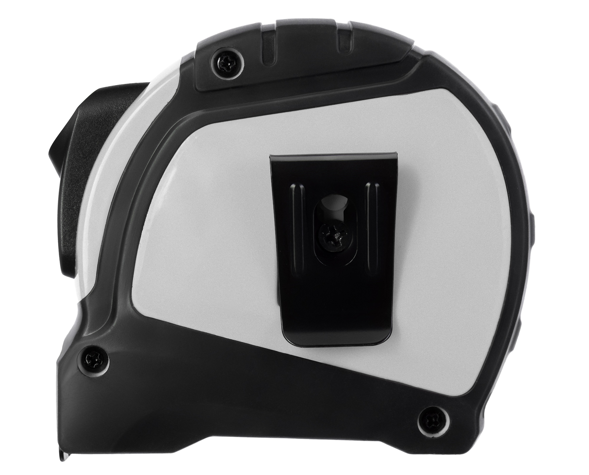 Для удобства использования лента имеет двухстороннюю разметку, что важно при измерении диаметров, внутренних размеров проемов и др. Магнитный зацеп на конце можно крепить к металлическим поверхностям. Рулетка позволяет делать несколько замеров подряд – выдвинутая лента блокируется автоматически и не сворачивается, пока не будет нажата кнопка на корпусе. Благодаря поясному креплению рулетку удобно носить с собой.