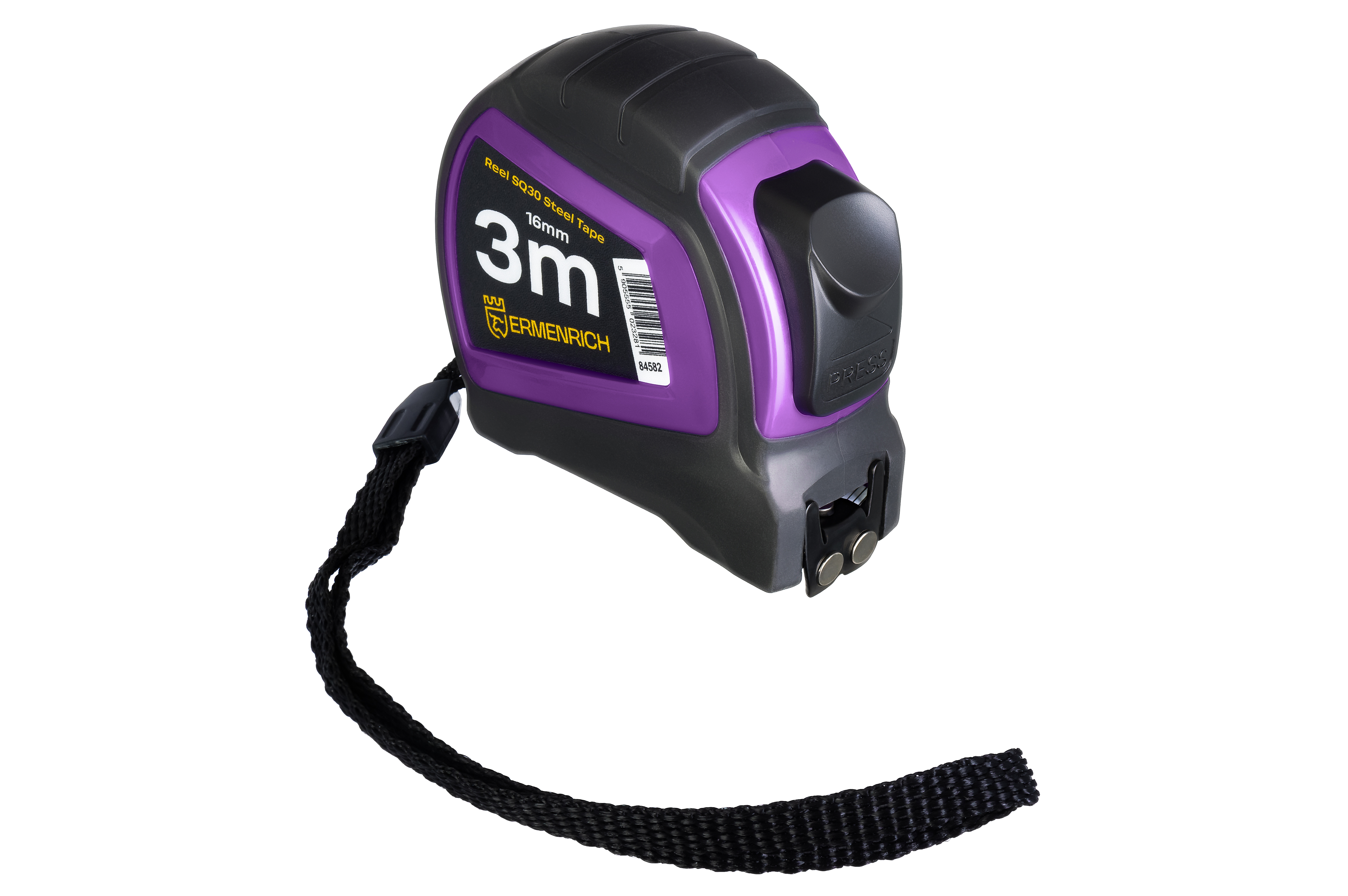 Надежное и стойкое к повреждениям полотно рулетки выполнено из матовой стали, его ширина составляет 16 миллиметров. Лента блокируется автоматически, снабжена прочным зацепом. Эргономичное расположение кнопки фиксатора делает работу с рулеткой особенно удобной, даже если нужно выполнить много замеров один за другим. Компактный корпус Ermenrich Reel SQ30 из высокопрочного ABS-пластика обрезинен для дополнительной защиты от повреждений – инструмент прослужит долгое время.