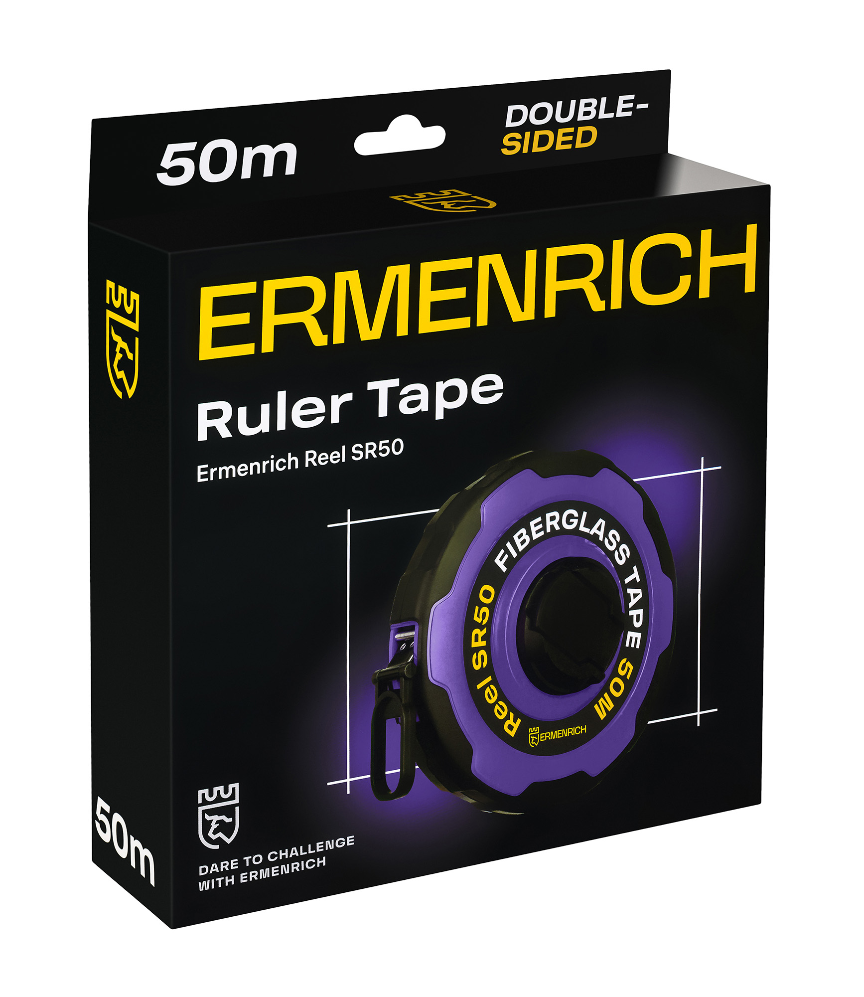 С помощью рулетки Ermenrich Reel SR50 можно проводить измерения длины в диапазоне до 50 метров. Она представляет собой фиберглассовую ленту с двусторонней шкалой, помещенную в прочный дисковый корпус из ABS-пластика. Лента дополнена большим и удобным в использовании зацепом. Для сворачивания полотна используется боковая катушечная ручка: она имеет складную конструкцию, поэтому может быть убрана, когда не нужна.
