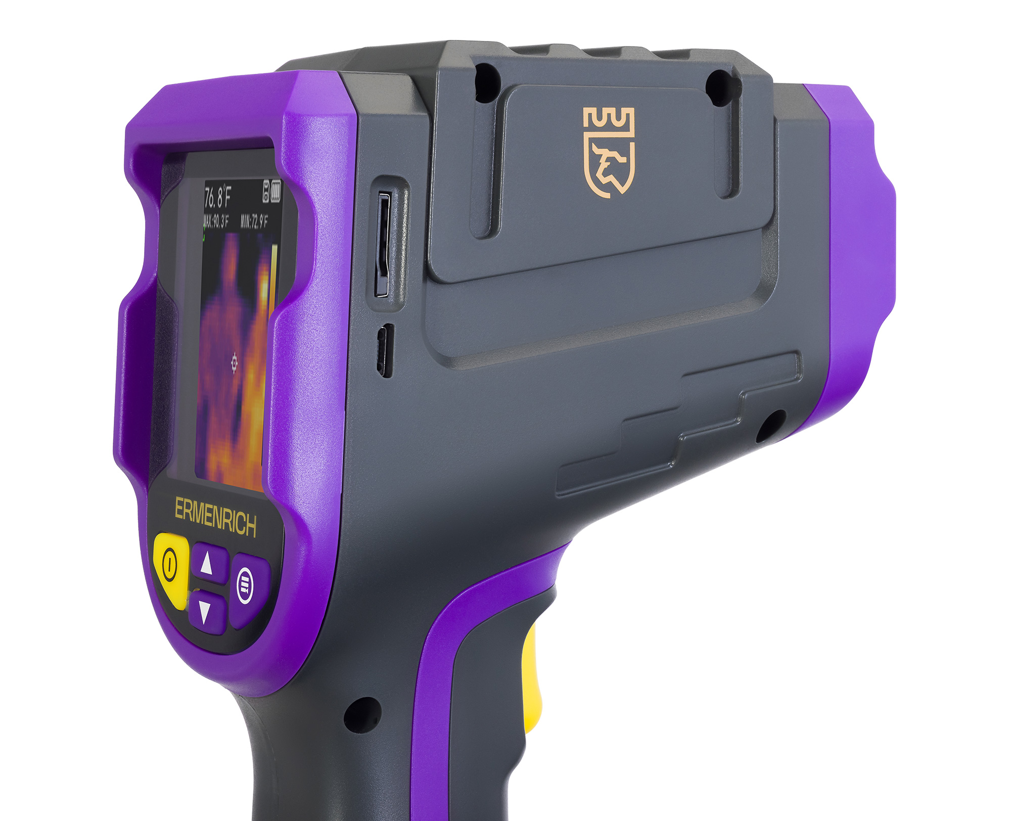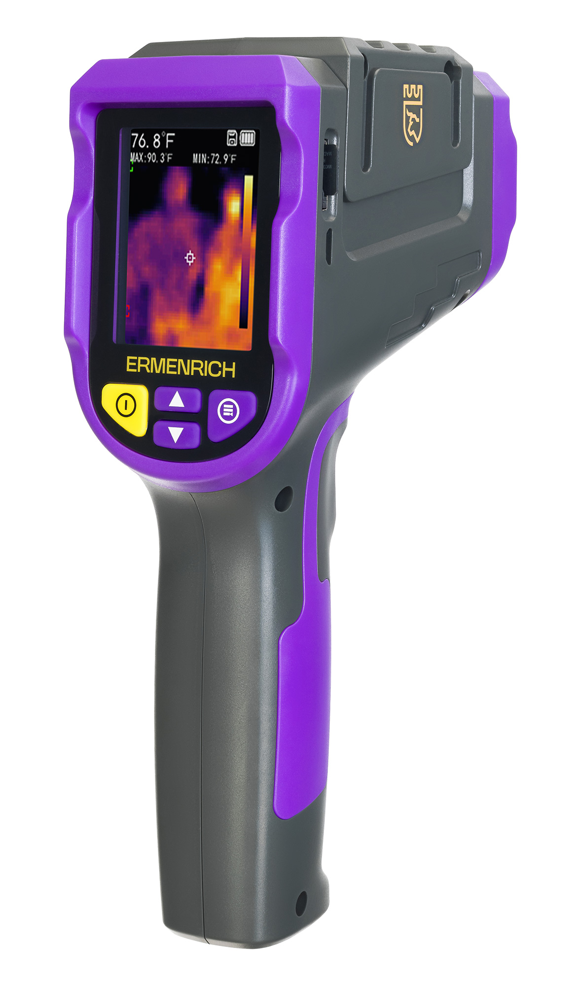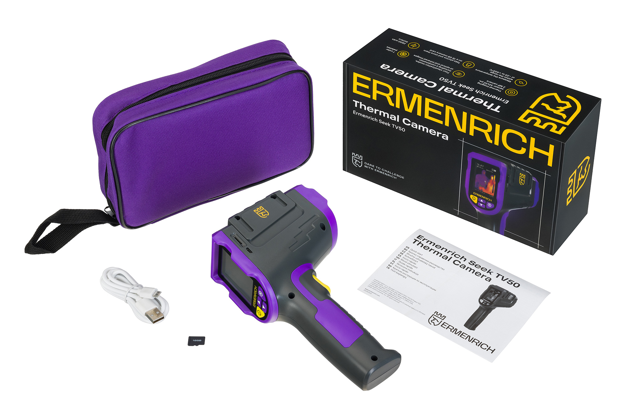 Возможности тепловизора Ermenrich Seek TV50 пригодятся в самых разных сферах. При обследовании электрооборудования с помощью тепловизора фиксируются неисправности, например места повышенного нагрева контактов. При осмотре промышленных и жилых зданий он помогает найти тепловые утечки в фасадах и фундаментах, а в строительных работах используется для контроля монтажа теплых полов, радиаторов и водонагревателей. Также тепловизор помогает при ремонте и техническом обслуживании автомобилей и в борьбе с вредителями (при поиске мелких животных в зданиях). Диапазон измеряемой температуры у Ermenrich Seek TV50 составляет от –20 до +400 °С.