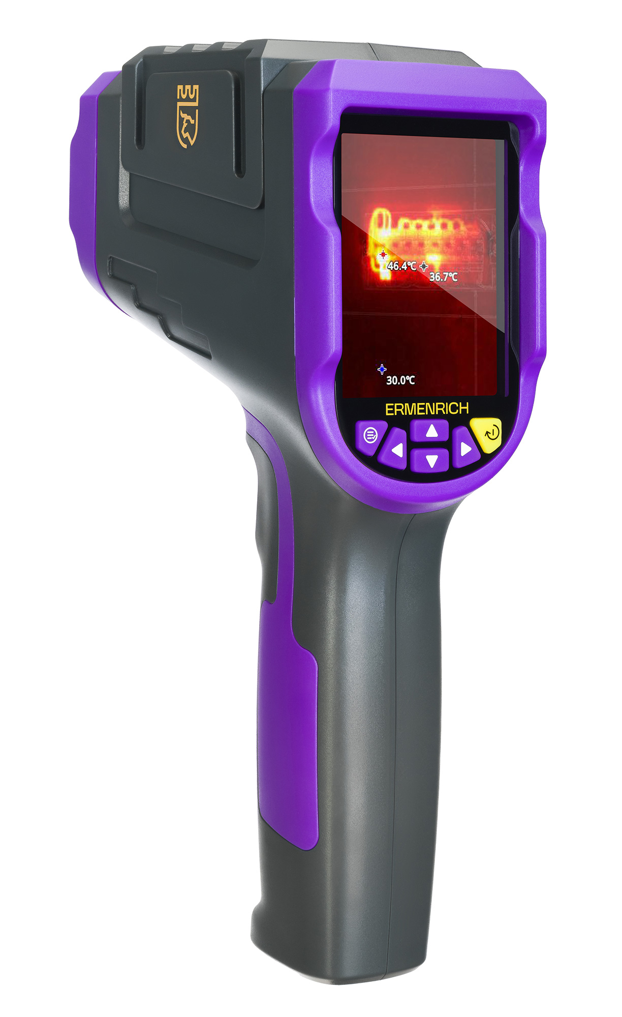 Тепловизор Ermenrich Seek TV70 послужит для обследования электрооборудования, поможет найти тепловые утечки в фасадах и фундаментах зданий или проконтролировать монтаж отопительных систем. Диапазон измеряемых температур тепловизора – от –20 до 400 °С.
