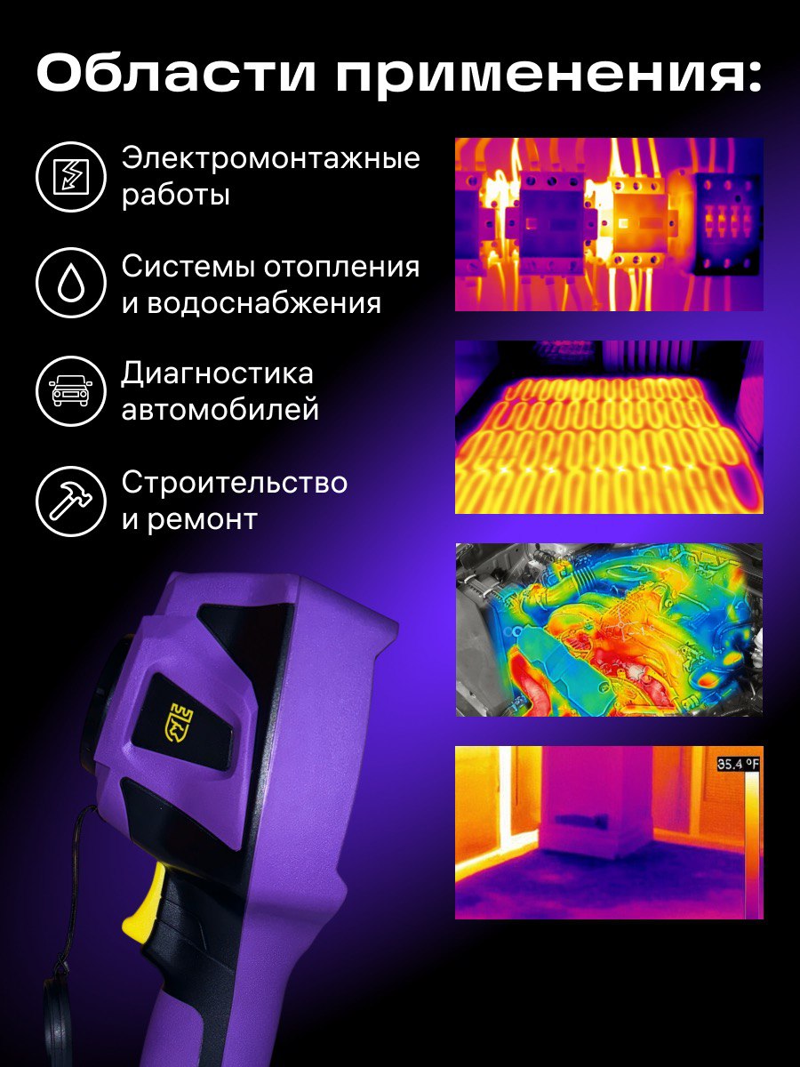 Ermenrich Seek TV80 – профессиональный портативный тепловизор, разработанный для решения широкого круга задач в строительстве и обслуживании инженерных систем. Устройство позволяет оперативно выявлять тепловые аномалии в конструкциях зданий, оценивать эффективность теплоизоляции стен, оконных и дверных проемов, фасадов, а также диагностировать системы отопления, вентиляции и кондиционирования. Прибор оснащен модулем Wi-Fi и может передавать данные на смартфон/планшет в реальном времени.
