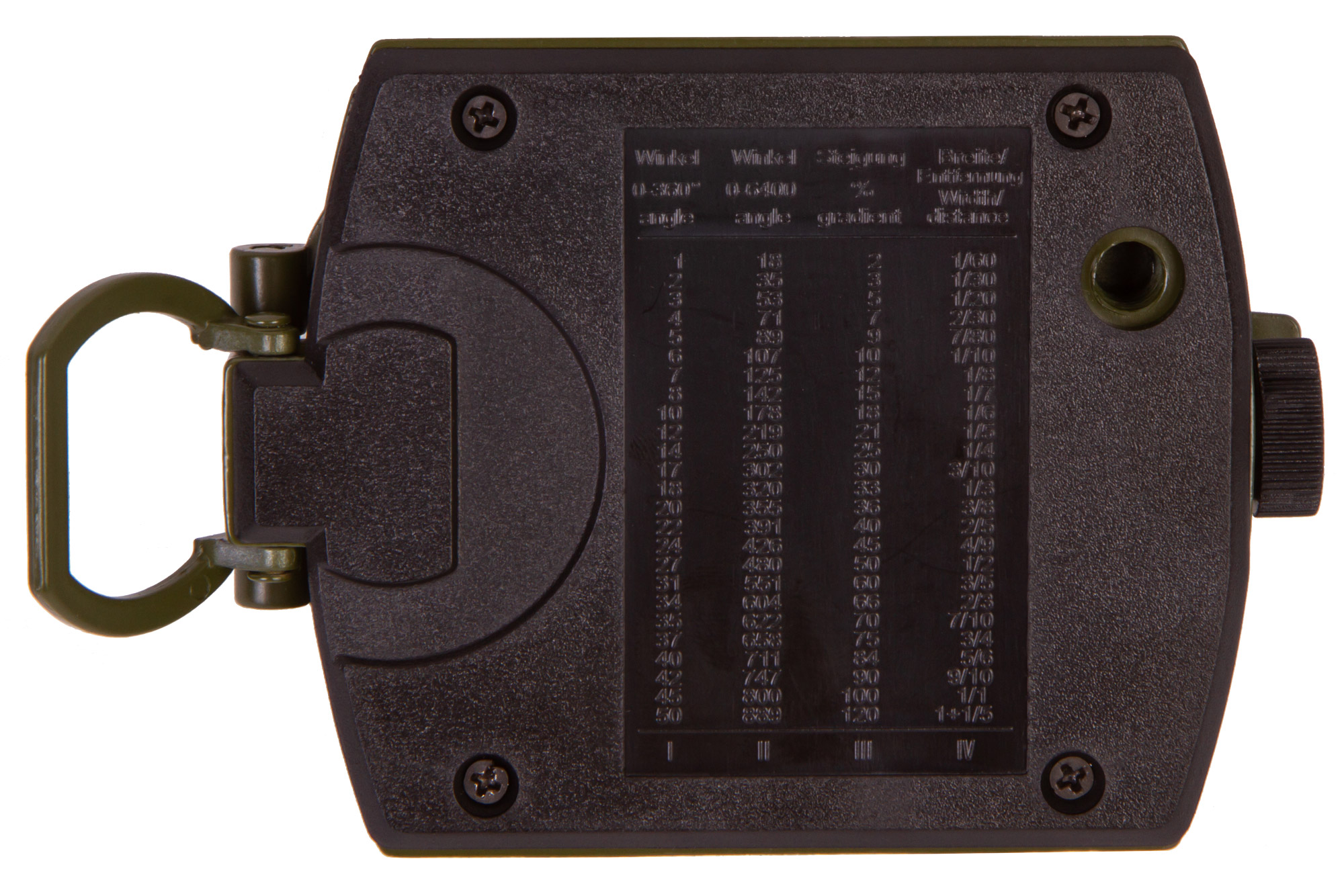 Прицельное окно компаса снабжается угломерной шкалой и двумя линейками для работы с картами в сантиметрах и дюймах. На задней поверхности AC10 есть таблицы формул точного расчета. Встроенный визир упрощает прицельное наведение на объекты и фиксацию азимута в градусах – для этого предусмотрена отдельная корпусная линза. Штатный разъем под штатив позволяет установить прибор на треногу.