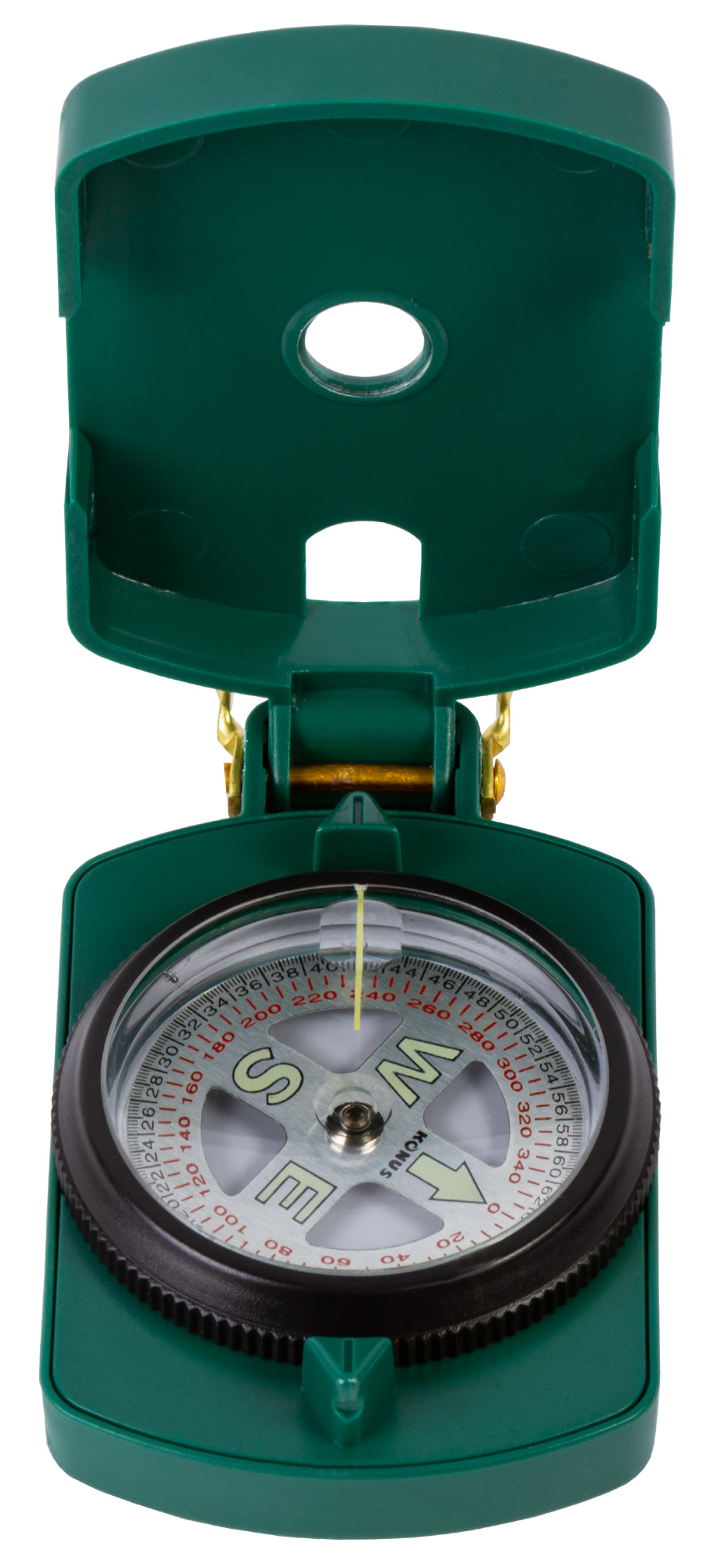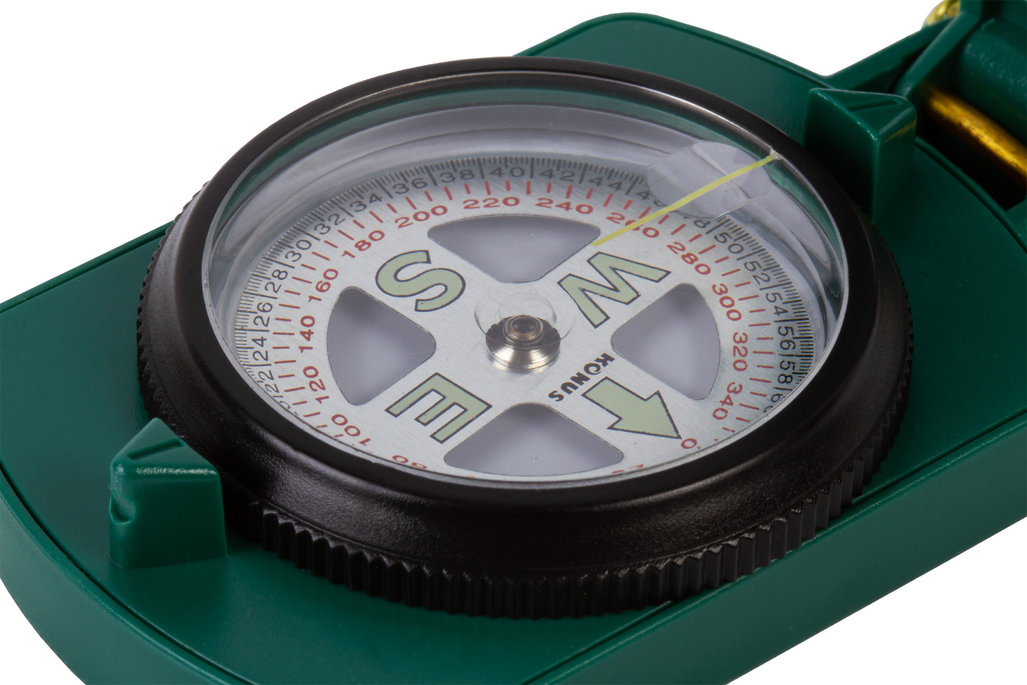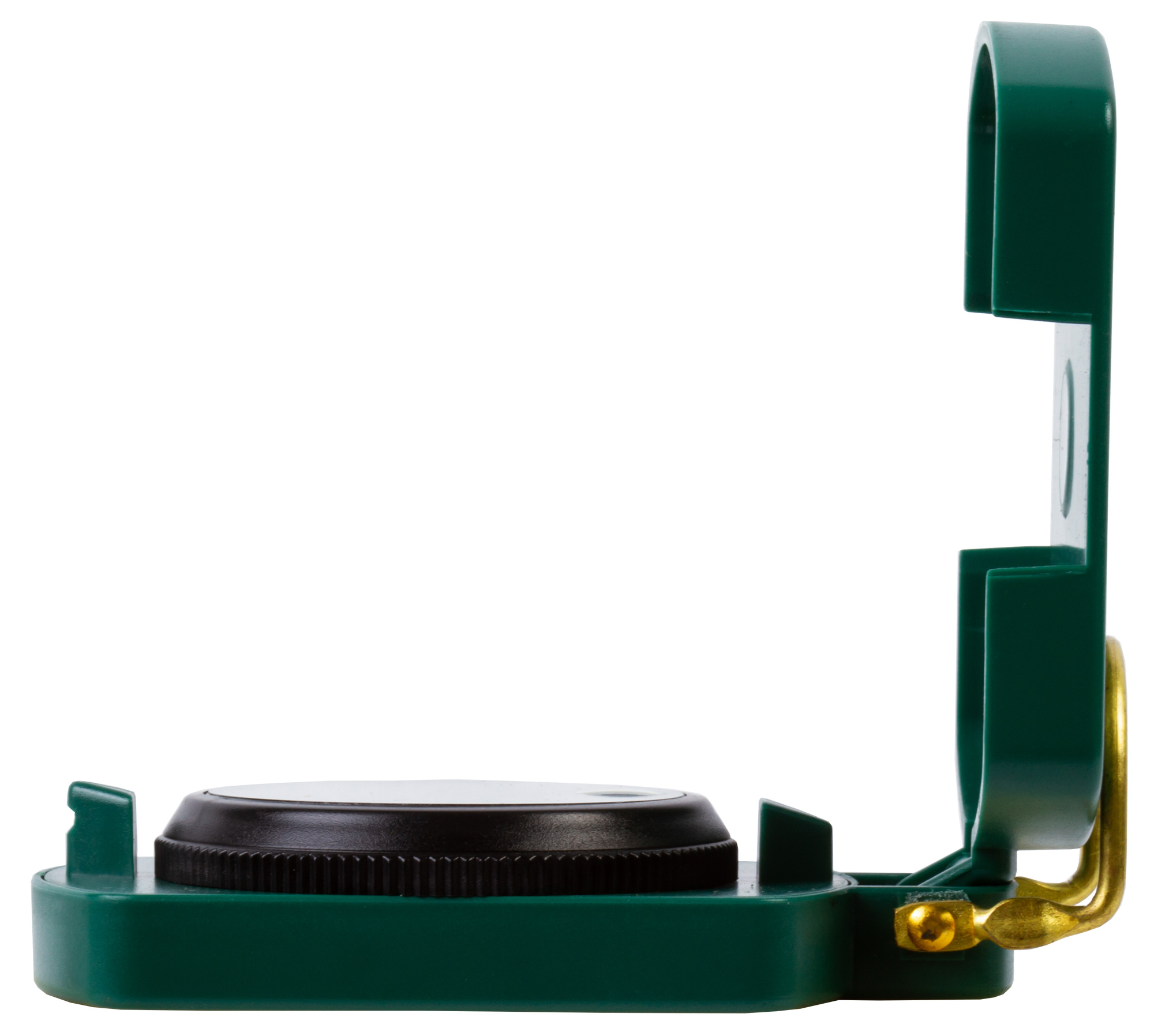 Так как это компас жидкостного типа, его магнитная стрелка быстро стабилизируется. На лимбе находится градусная шкала, а крупные обозначения сторон света видны четко и ясно. Корпус компаса сделан из пластика и для лучшей защиты снабжен откидной крышкой.