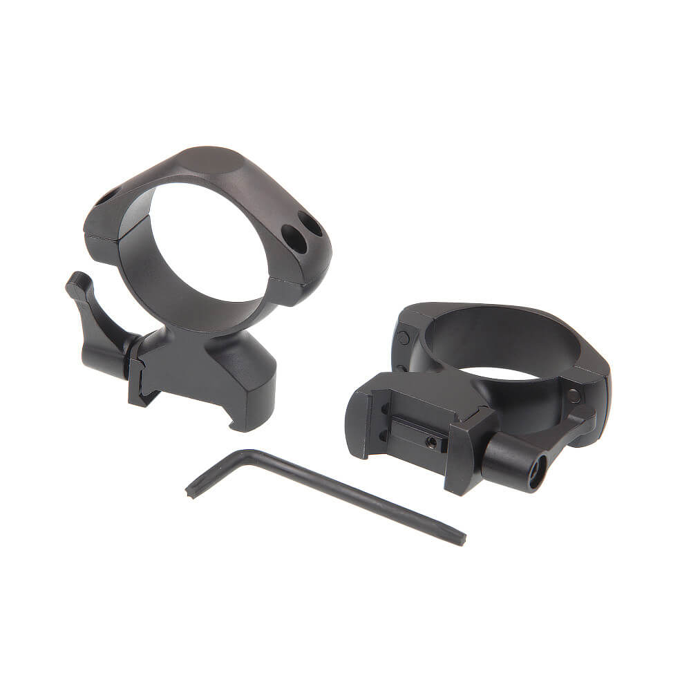 Быстросъемные высокие кольца Veber E 3421 HS предназначены для установки прицела с посадочным диаметром 34 мм на оружие с планкой Weaver. Высота установки прицела 40 мм. Существуют также высокие кольца Veber E 3421 MS с высотой установки прицела 33,5 мм.