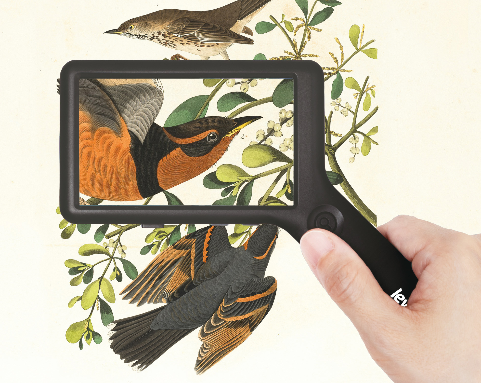 Аккумулятор обеспечивает до 3 часов автономной работы, заряда хватит на длительную сессию использования. Если прибор не активен в течение 10 минут, происходит автоматическое отключение. Корпус лупы из высокопрочного ABS-пластика эффективно защищает электронику от механических повреждений, а эргономичная рукоятка удобно лежит в руке. Кроме того, лупа оснащена опорными ножками и может использоваться как настольное устройство.