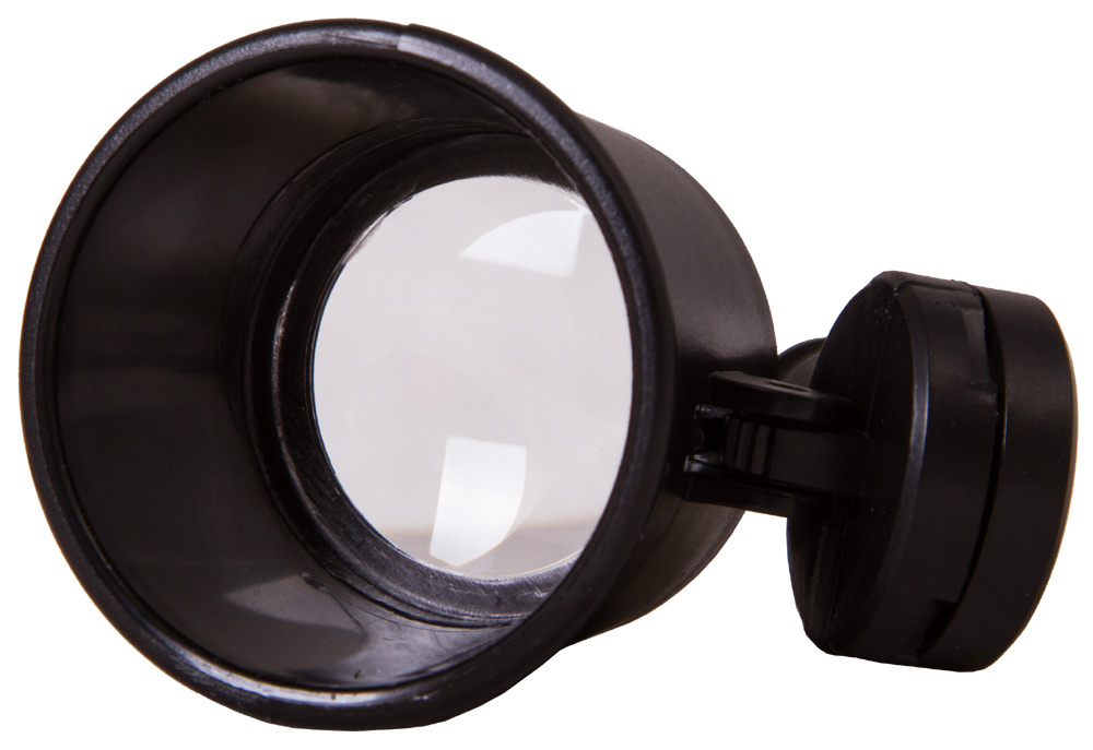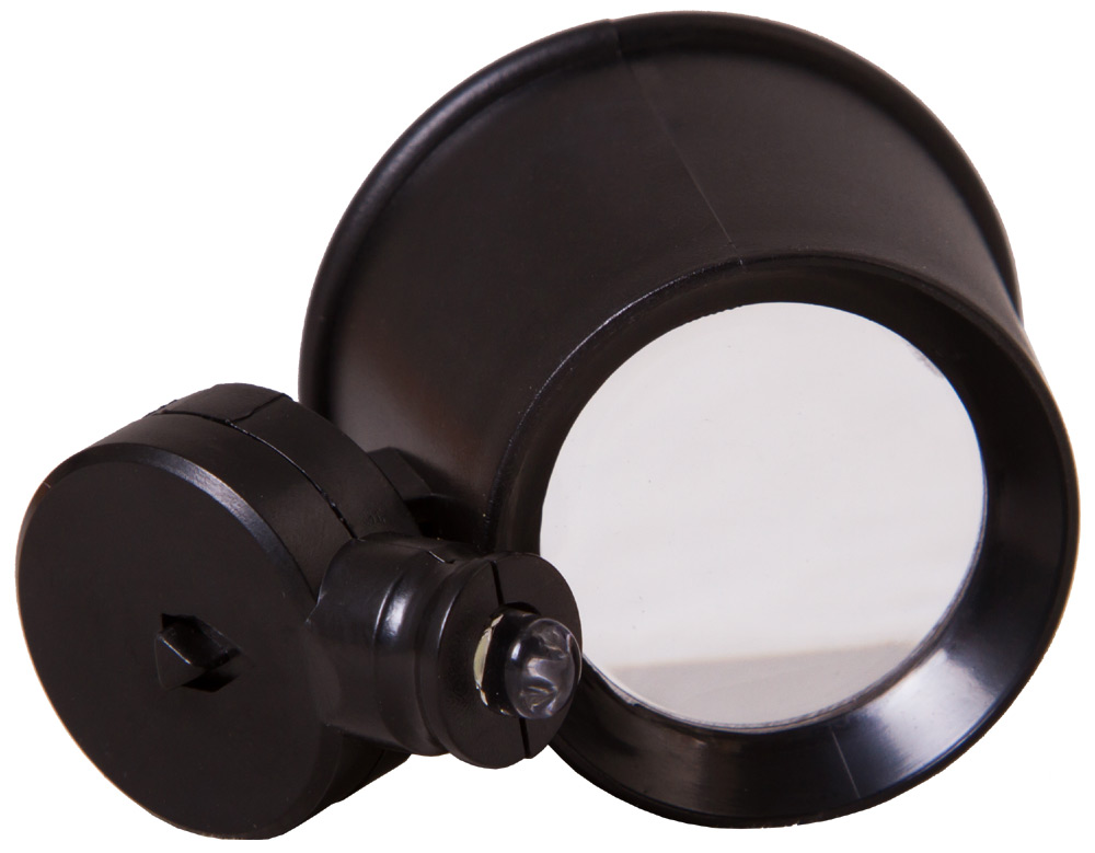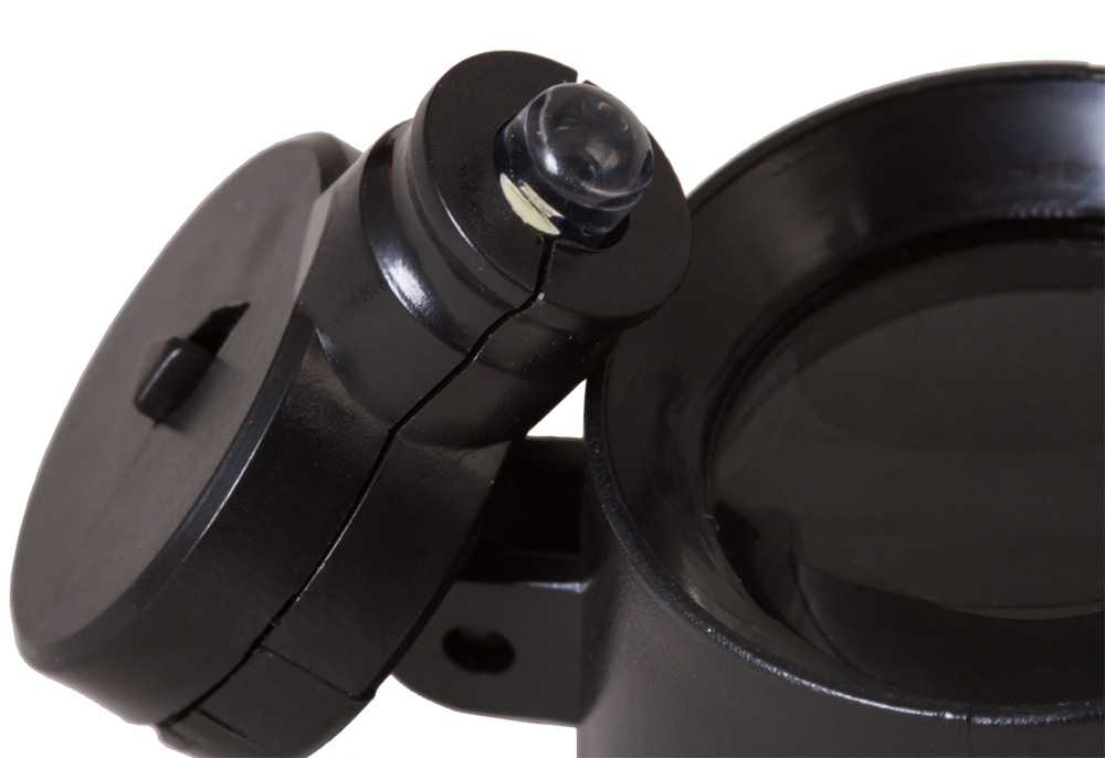 Линза прибора сделана из прочного и качественно оптического пластика, имеет диаметр 2.5 сантиметра и фиксированный коэффициент увеличения шесть крат. Она заключена в удобный цилиндрический корпус с расширением к выходу, снабжается откидным светодиодным модулем, упрощающим использование лупы при недостаточном внешнем освещении.
