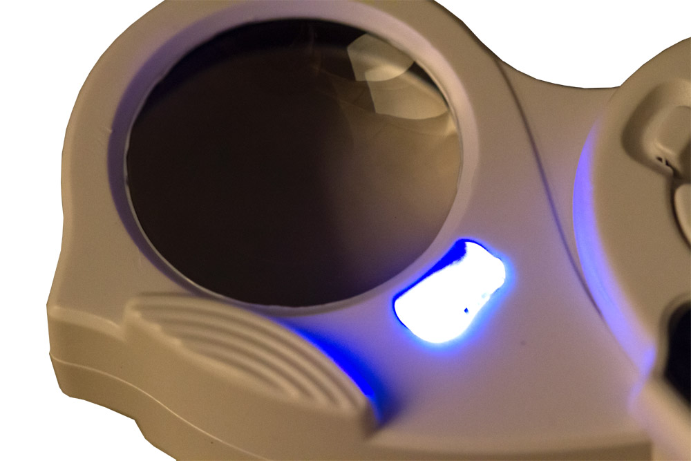 Аксессуар оснащен двумя типа подсветки. Классический светодиод, применяющийся для улучшения видимости при недостаточном внешнем освещении, дополняется ультрафиолетовым излучателем, упрощающим выявление водяных знаков на денежных купюрах, важных документах.
