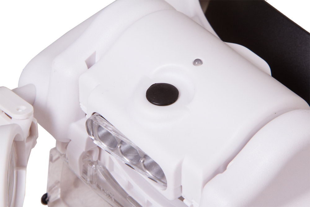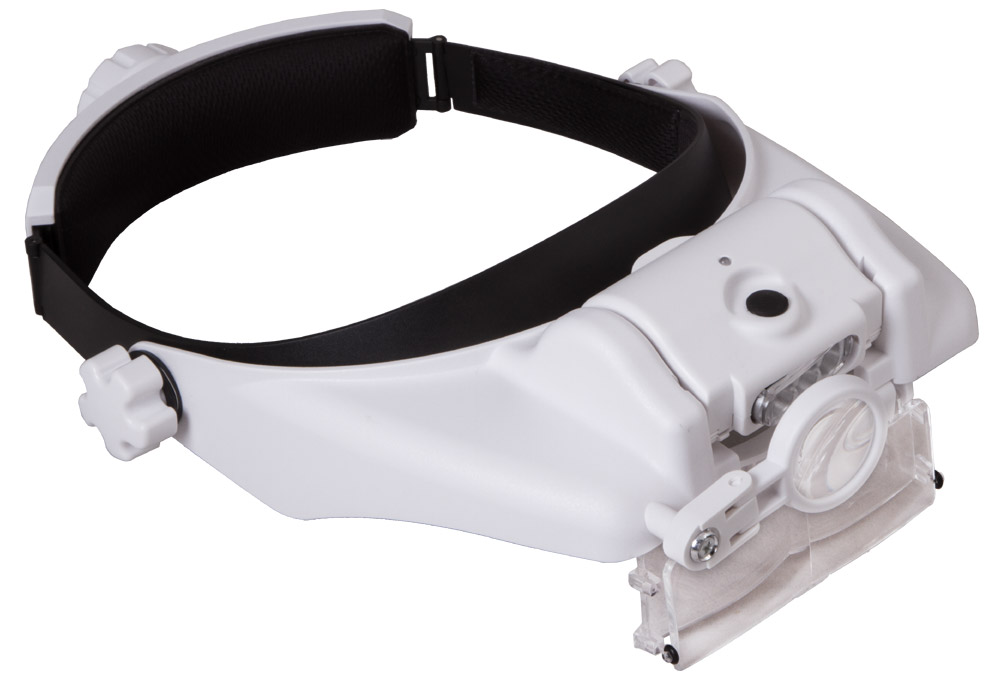 Levenhuk Zeno Vizor HR2 – профессиональный налобный оптический прибор для ремонтников, ювелиров, оценщиков, сборщиков миниатюрных моделей и иных людей, регулярно работающих с мелкими объектами. Снабжен светодиодной подсветкой с регулировкой яркости, а также несколькими несъемными линзами, позволяющими формировать различный коэффициент увеличения в диапазоне от полутора до восьми крат.