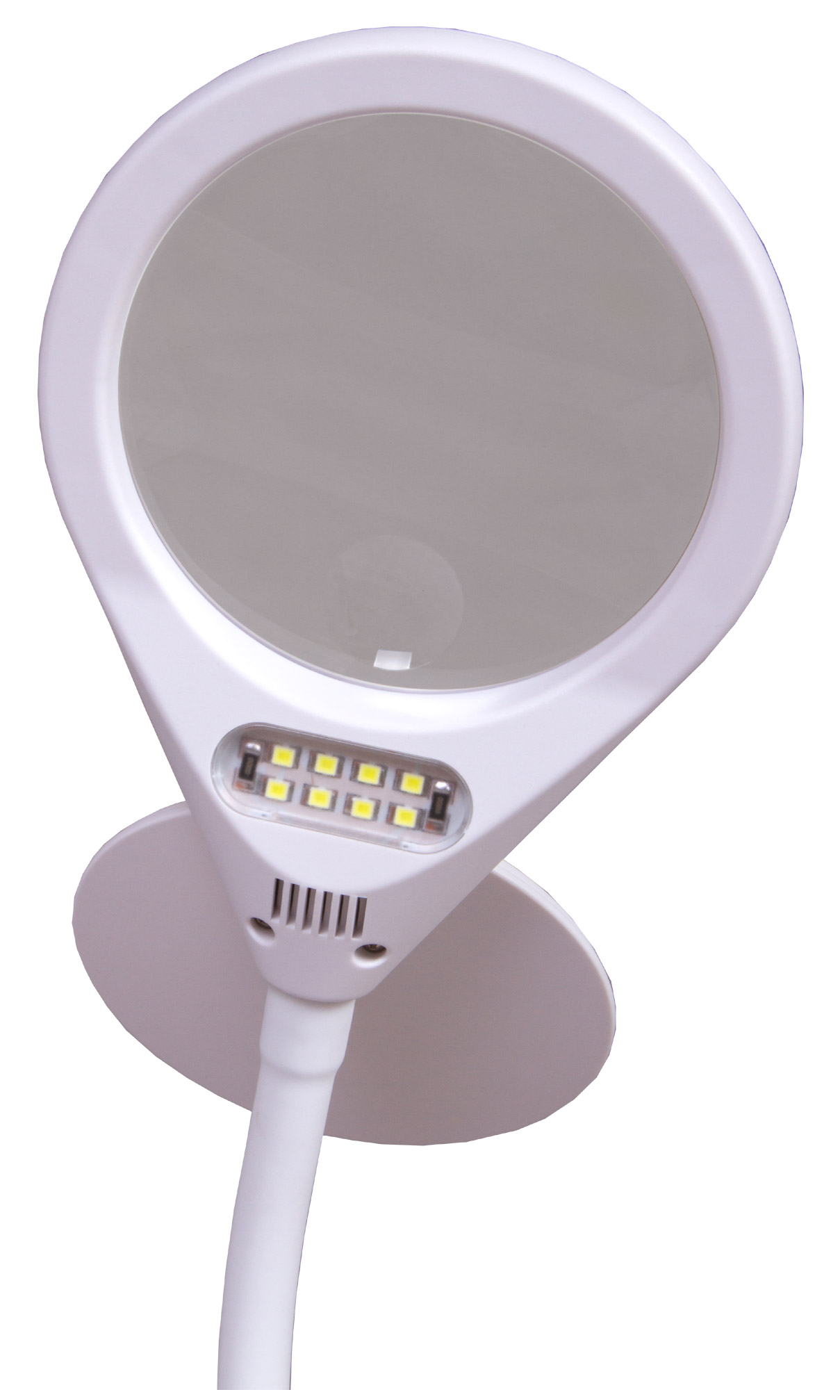 Изделие легко и просто регулируется по углу наклона/направлению с помощью шибкого штатива. Он рассчитан на активное использования и выдерживает даже значительные перегибы. Основанием прибора выступает комбинированная подставка-клипса. Функционал последней позволяет устанавливать лупу в горизонтальное положение на стол или иную ровную поверхность, а также надежно закреплять где угодно – для этих целей может использоваться полка, дверца шкафа, иные элементы интерьера.
