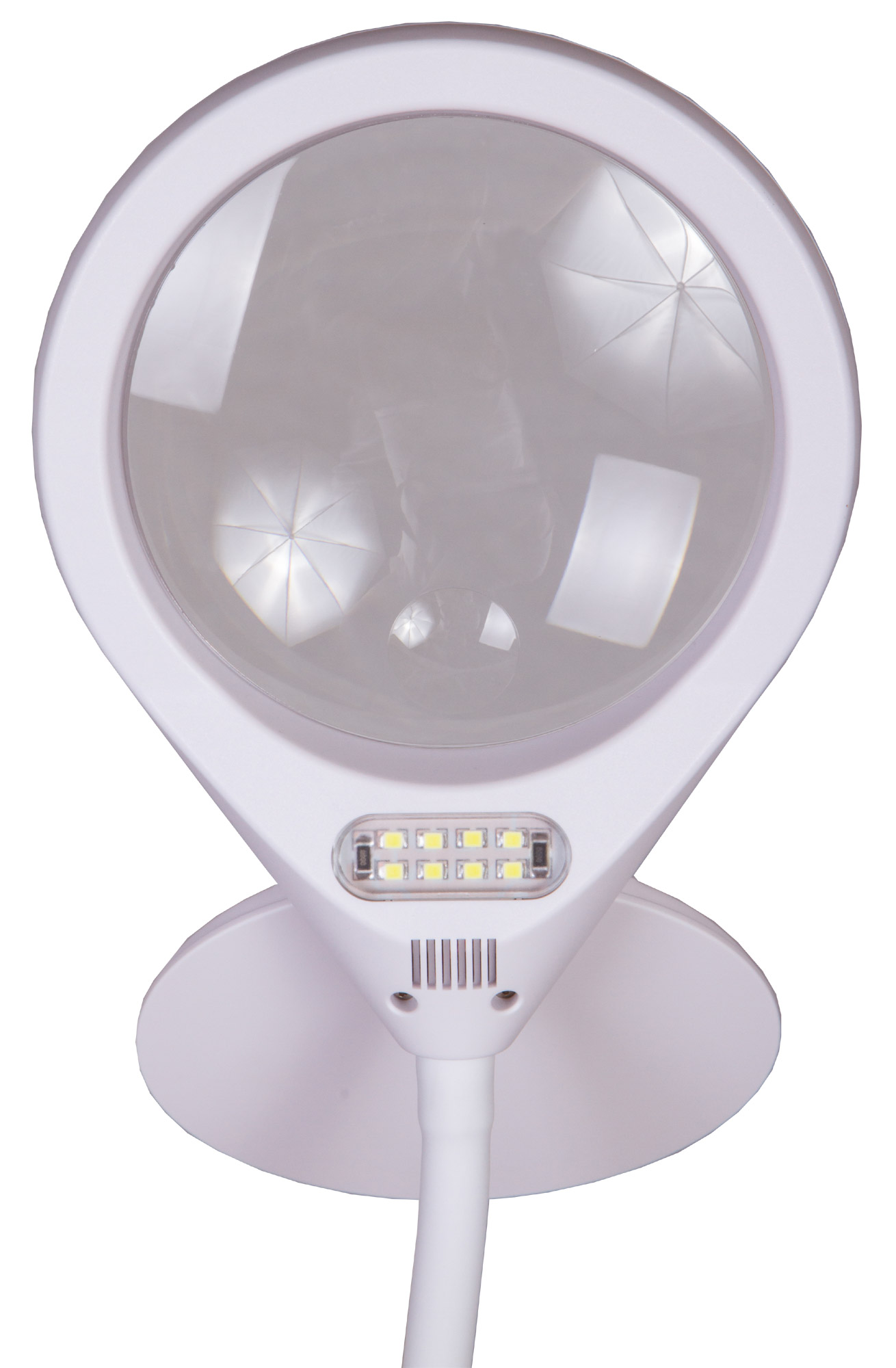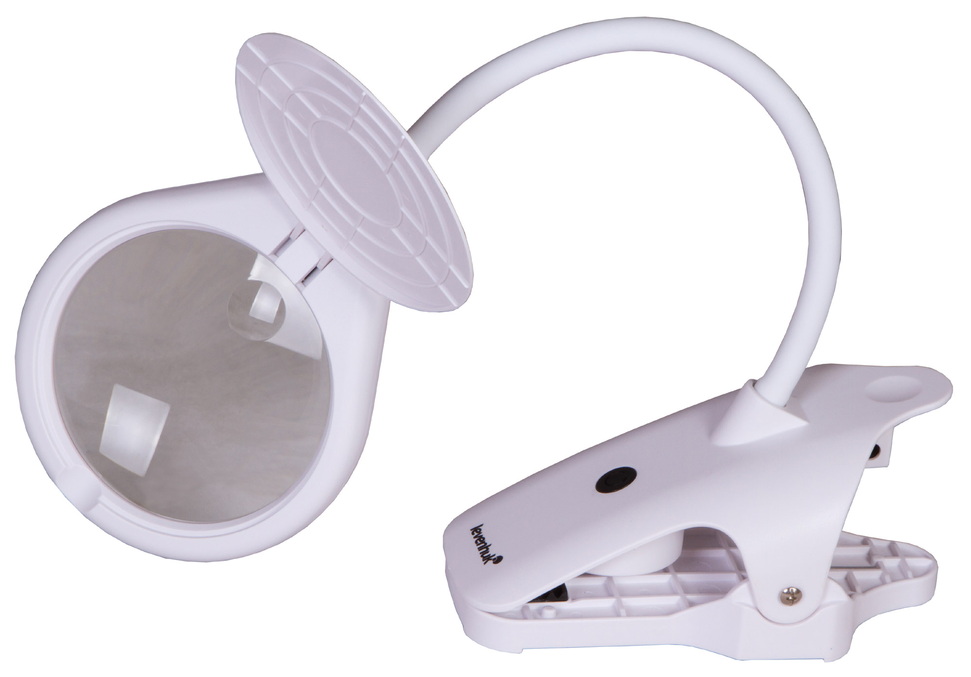 Благодаря наличию гибкого штатива, лупу можно устанавливать практически в любом положении, произвольно менять степень наклона, угол и так далее. Прочное широкое основание прибора с зажимом гарантирует два варианта установки и потенциального использования изделия – как классический настольный гаджет или подвесной компонент, легко прицепляющийся к краю полки, дверей шкафа.