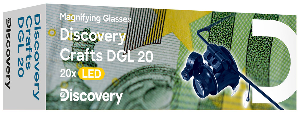 Лупа-очки Discovery Crafts DGL 20 – идеальный помощник для работы или хобби, требующего внимания к очень мелким деталям. Она дает 20-кратное увеличение, имеет небольшое фокусное расстояние и благодаря очковой оправе не занимает руки. Эту лупу можно использовать для изучения часовых механизмов, ювелирных изделий, предметов искусства, электронных плат, масштабных моделей и многого другого.