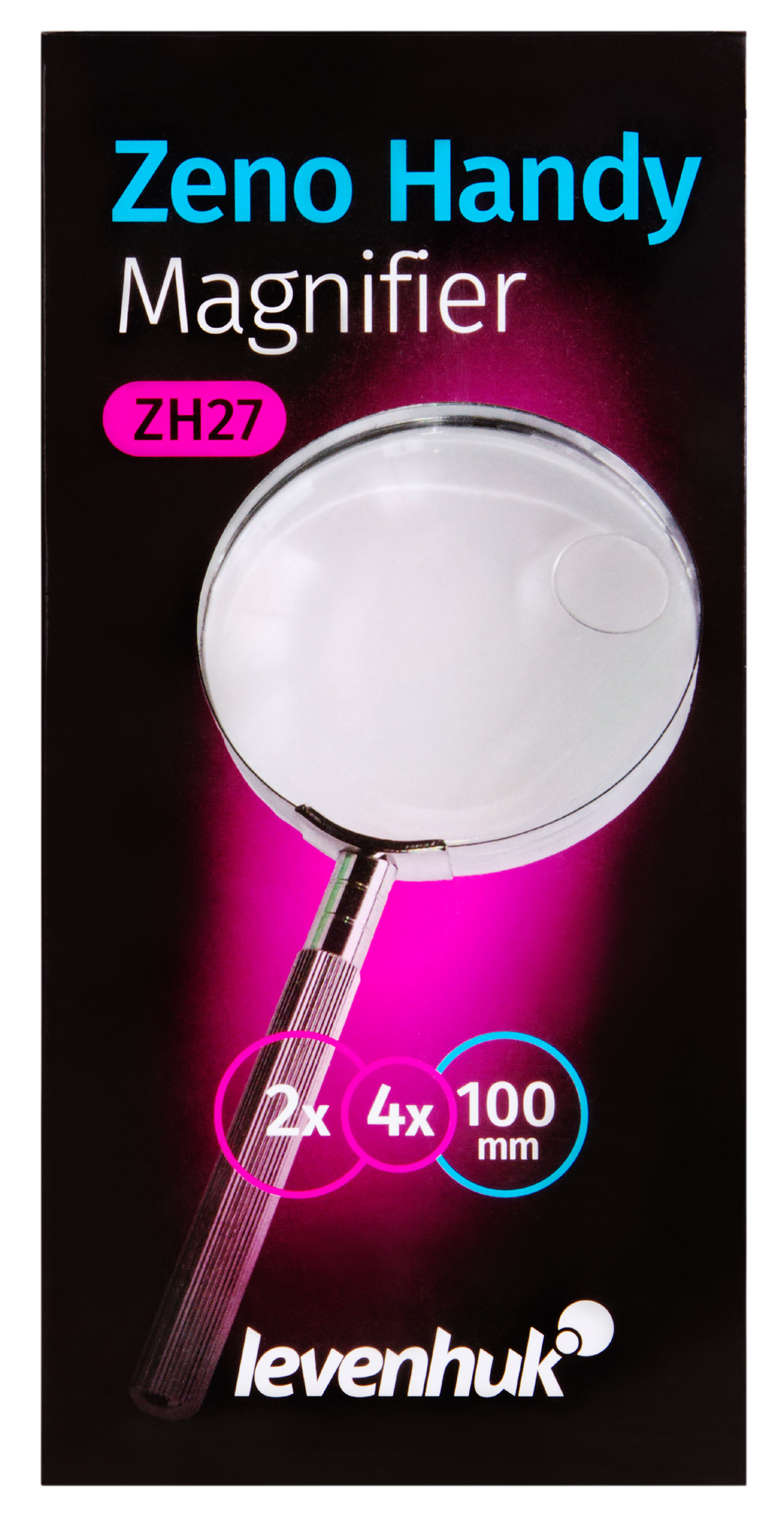Ручная лупа Levenhuk Zeno Handy ZH27 – оптический прибор с бифокальной линзой. Ее основная особенность – два увеличения (2 и 4 крата). Меньшее доступно по всей площади основной линзы (100 мм), большее – только на области диаметром 20 мм. Лупа хорошо подходит и для рассматривания фотографий, и для чтения мелкого текста, и для изучения мелких объектов на разном увеличении.