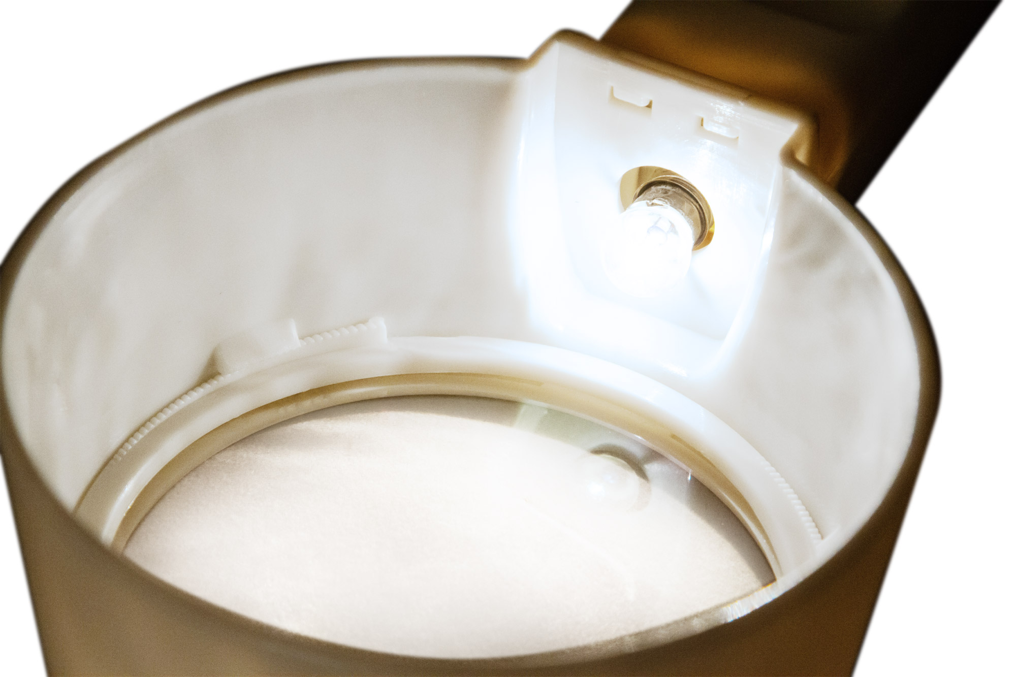 Линза сделана из пластика, оправа и ручка – тоже пластиковые. Переключатель подсветки расположен на ручке. Чтобы использовать подсветку, нужны батарейки (нет в комплекте).