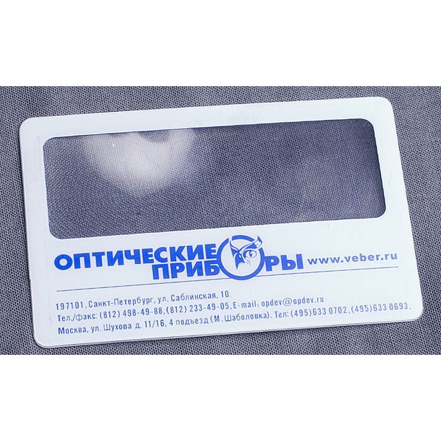 Размер линзы соответствует обычному размеру визитной карточки. Поставляется в пластиковом чехле.