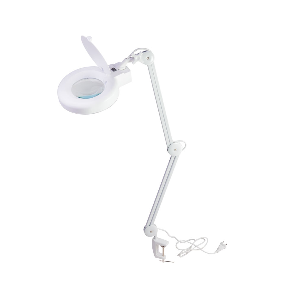 Настольная лампа-лупа 8608D 3D (220B) на металлической струбцине с люминесцентной подсветкой выполняет сразу две функции: дает ровное бестеневое освещение предмета и позволяет разглядеть самые мелкие детали с помощью стеклянной линзы Ø127 мм с увеличением 1.75х (3 диоптрии).