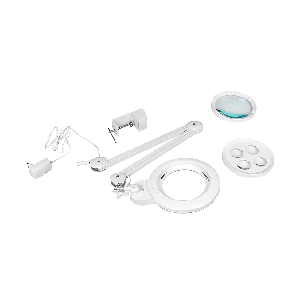Все линзы лупы-лампы изготовлены из оптического стекла, поэтому получаемое изображение абсолютно лишено окраски и искажения по краям поля зрения. Материал обойм – прочный противоударный ABS-пластик.