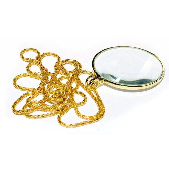 Лупа-монокль в позолоченной оправе с цепочкой. Цепочку можно прикрепить к одежде во избежание потери лупы. Увеличение 6х, диметр линзы 42 мм. Неотъемлемый атрибут любого филателиста, нумизмата и актера 19-го века.