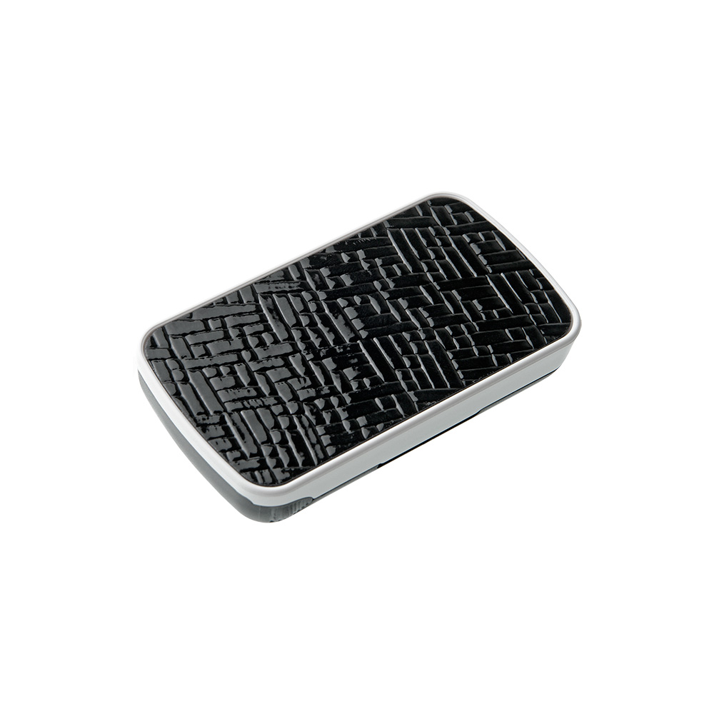 Стильное оформление корпуса: чёрные и белые элементы и пластиковая вставка на лицевой стороне, имитирующая тиснёную кожу.