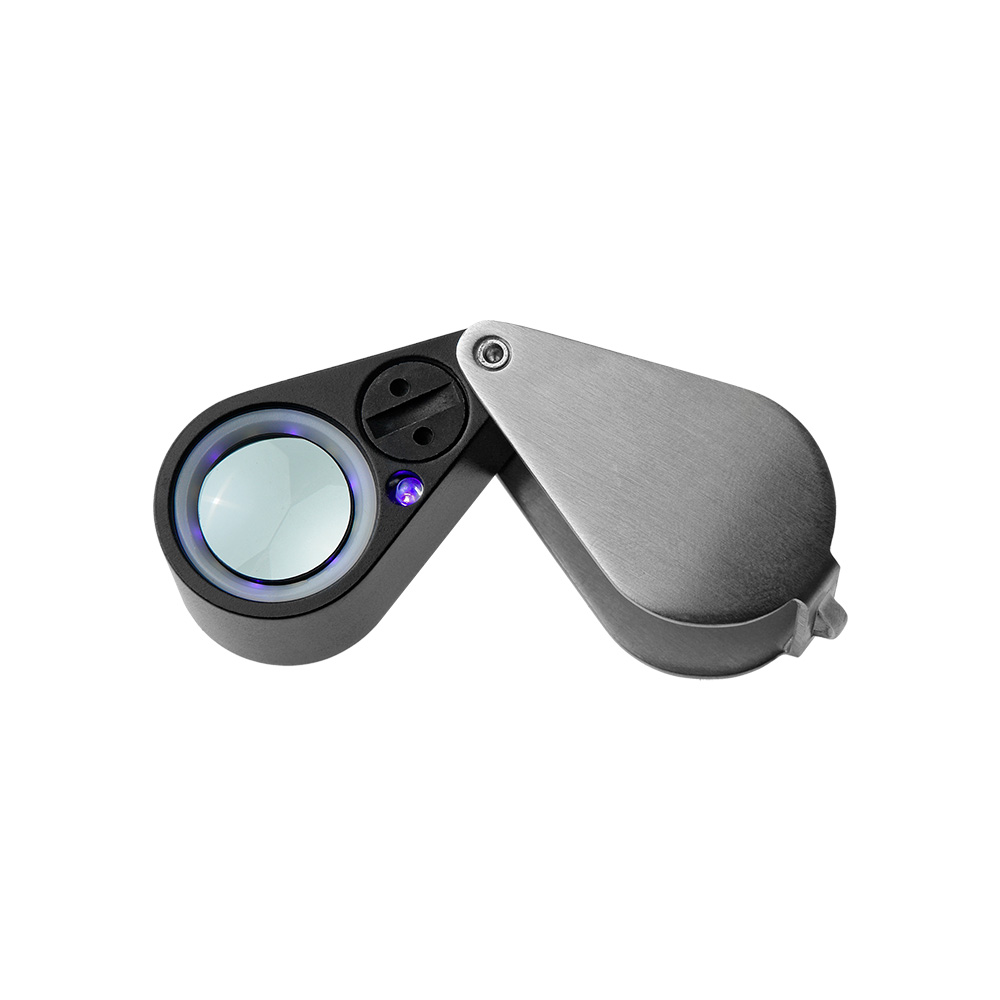 Корпус лупы и оправа изготовлены из металла. Сверху на оправе предусмотрен переключатель подсветки: подсветка поля зрения линзы и УФ подсветка. На нижней части оправы (вокруг линзы) расположены 6 УФ-светодиодов и ещё один более мощный УФ-светодиод расположен около батарейного отсека. Также на нижней части корпуса находится отсек для батарейки под винтовой крышкой.