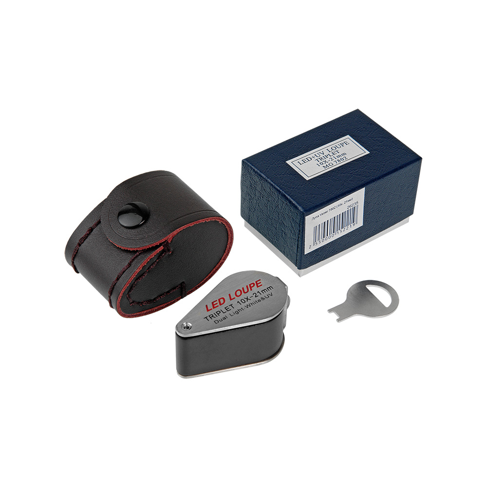 Для замены батарейки в лупе в комплектации предусмотрен фасонный металлический ключ. Для хранения и транспортировки лупы служит чехол из натуральной кожи, прошитой суровыми нитками, – дань старинным традициям. Кроме того, эту лупу можно носить на шейном или кистевом ремне, для чего на корпусе лупы предусмотрено соответствующее ушко.