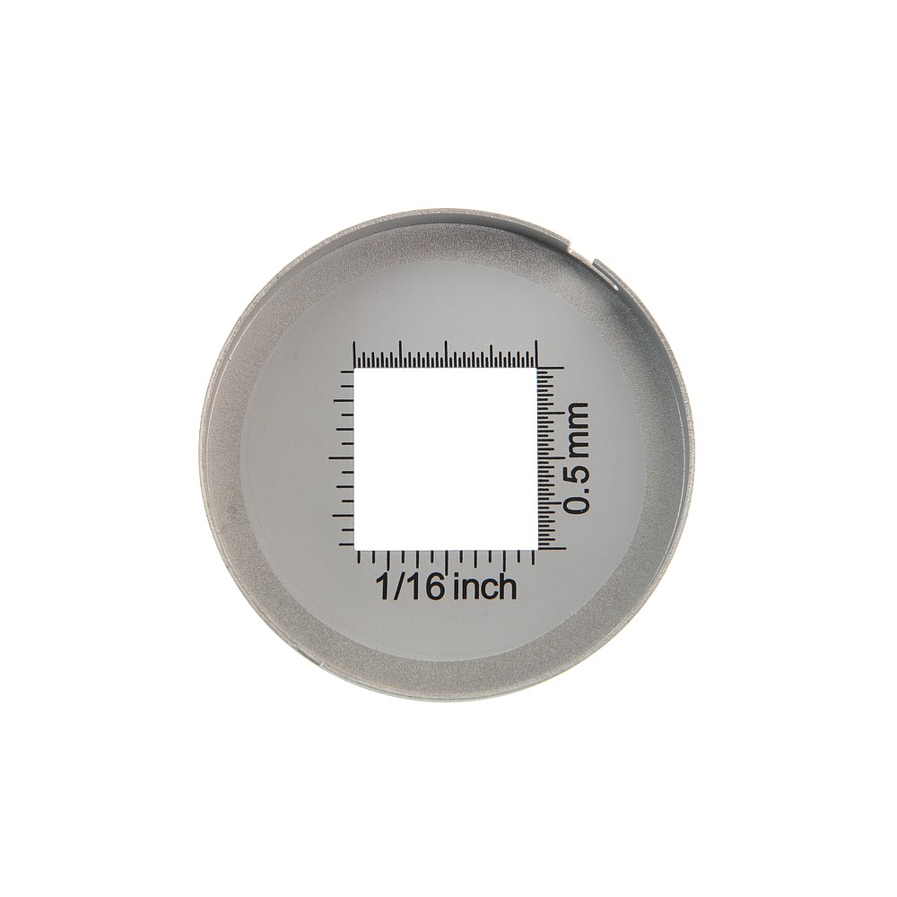 К нижней части оправы лупы прикреплена крышка-заглушка (съёмная) в центре которой имеется квадратная диафрагма с размерами 2 х 2 см. По всем четырём краям диафрагмы (с внутренней стороны крышки-заглушки) нанесены измерительные риски. При проведении измерений необходимо включить светодиодную подсветку — только тогда эти риски будут видны наблюдателю. Таким образом, можно производить измерения объектов с размером стороны до 2 см с точностью до 0.5 мм. Со снятой крышкой-заглушкой поле зрения лупы составляет около 30 мм.